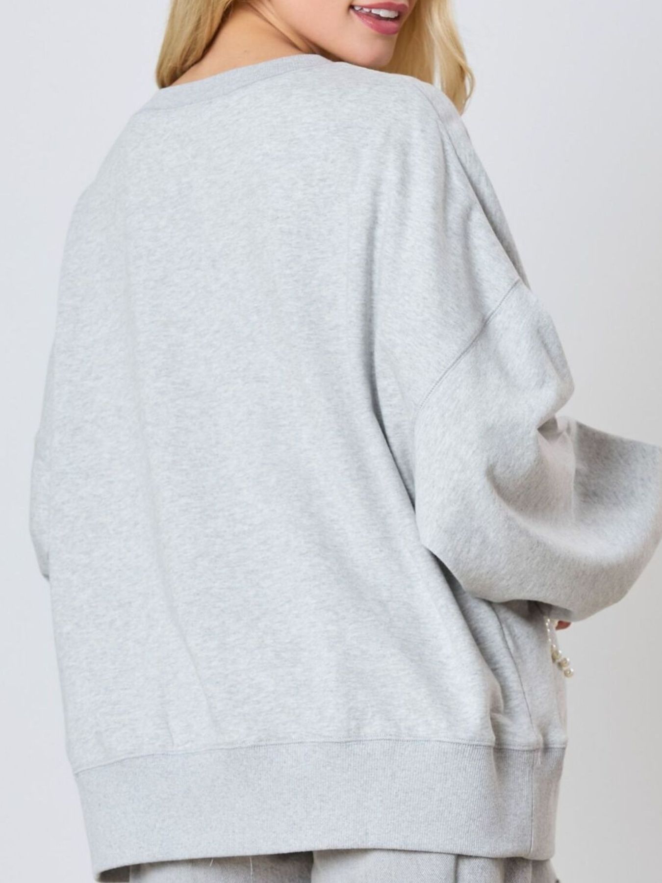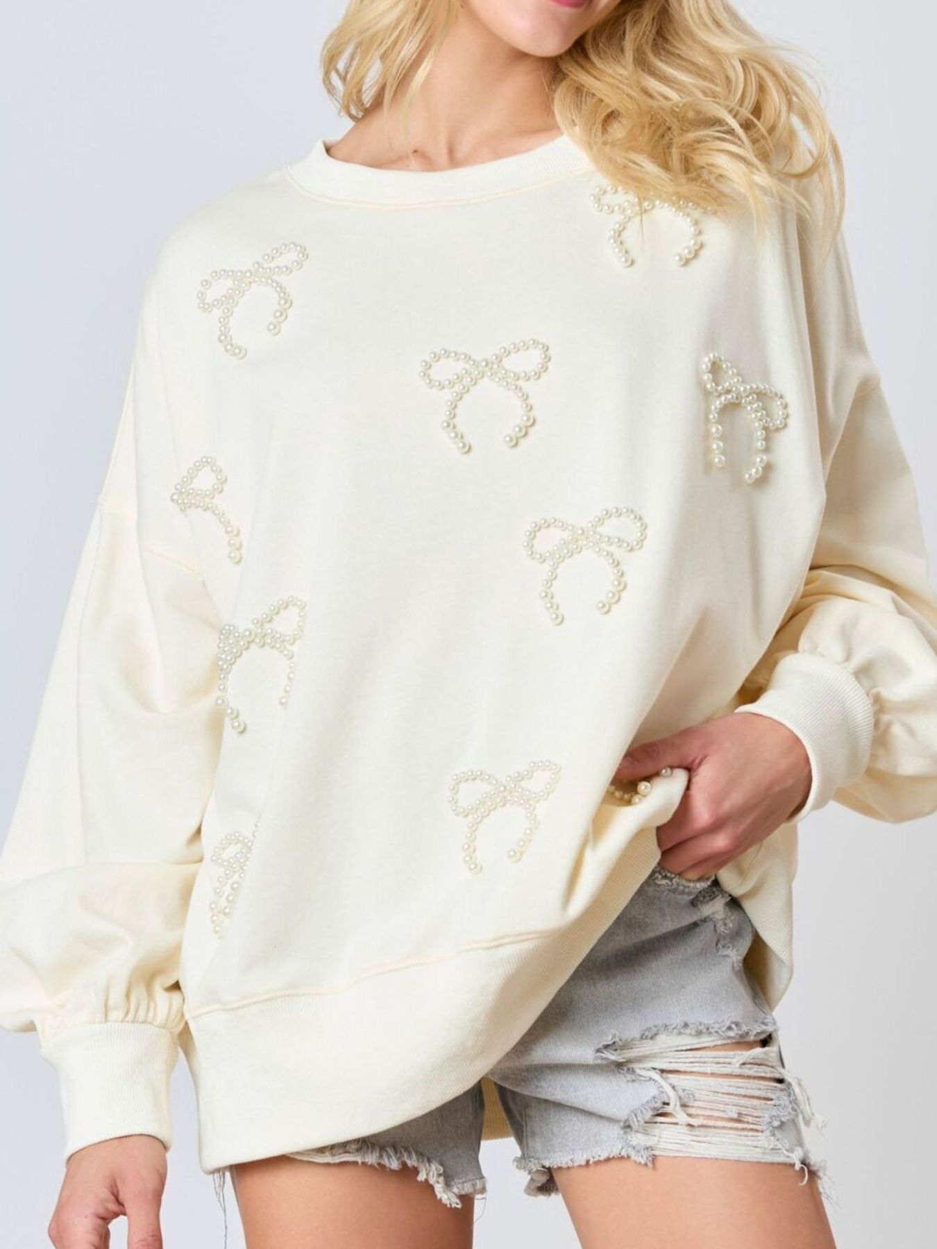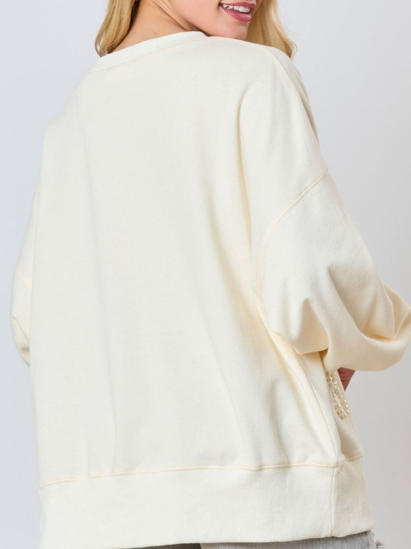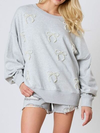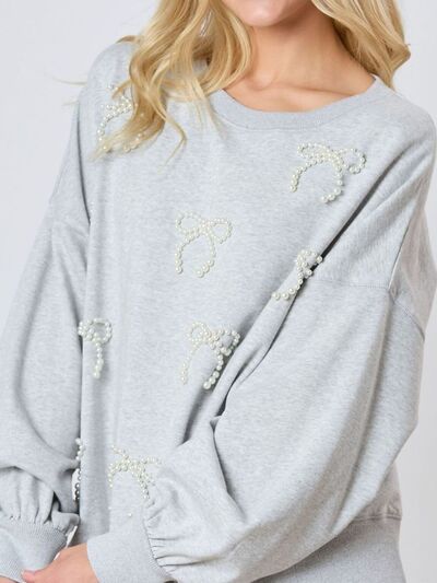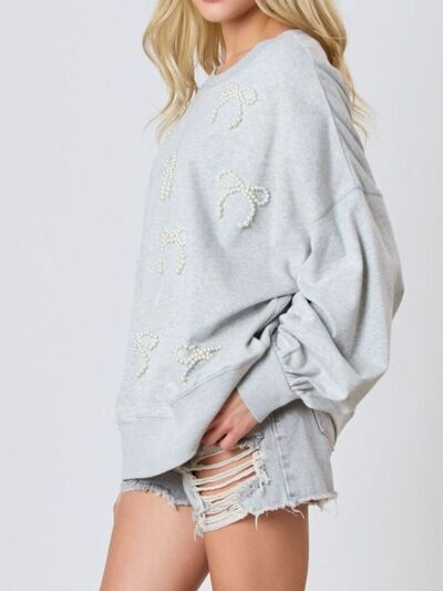 Pearl Embellished Bow Long Sleeve Sweatshirt