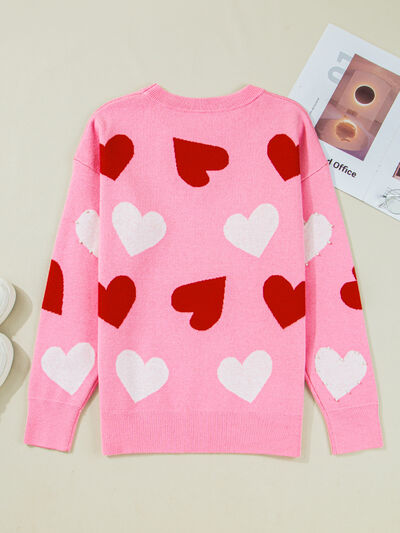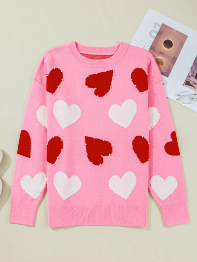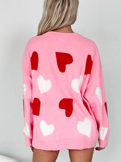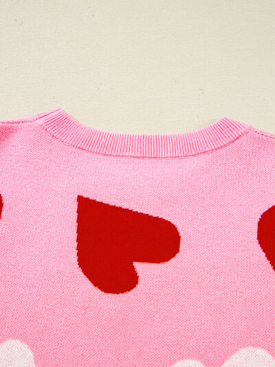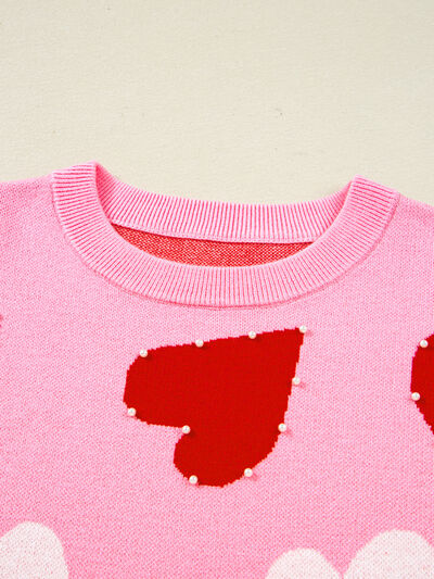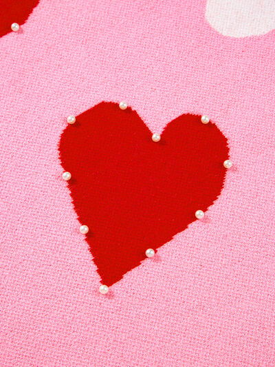 Pearl Embellished Heart Pattern Valentines Day Sweater