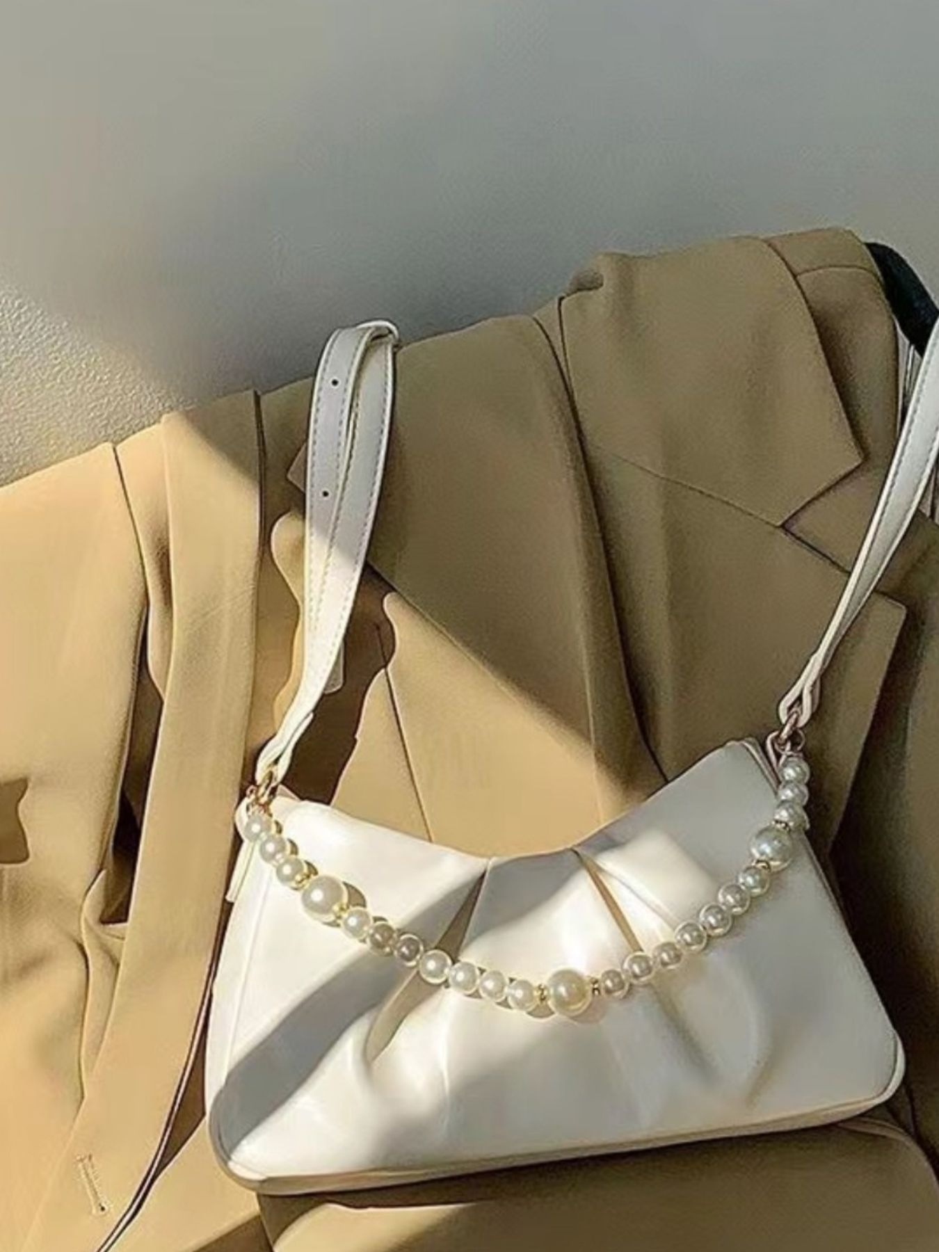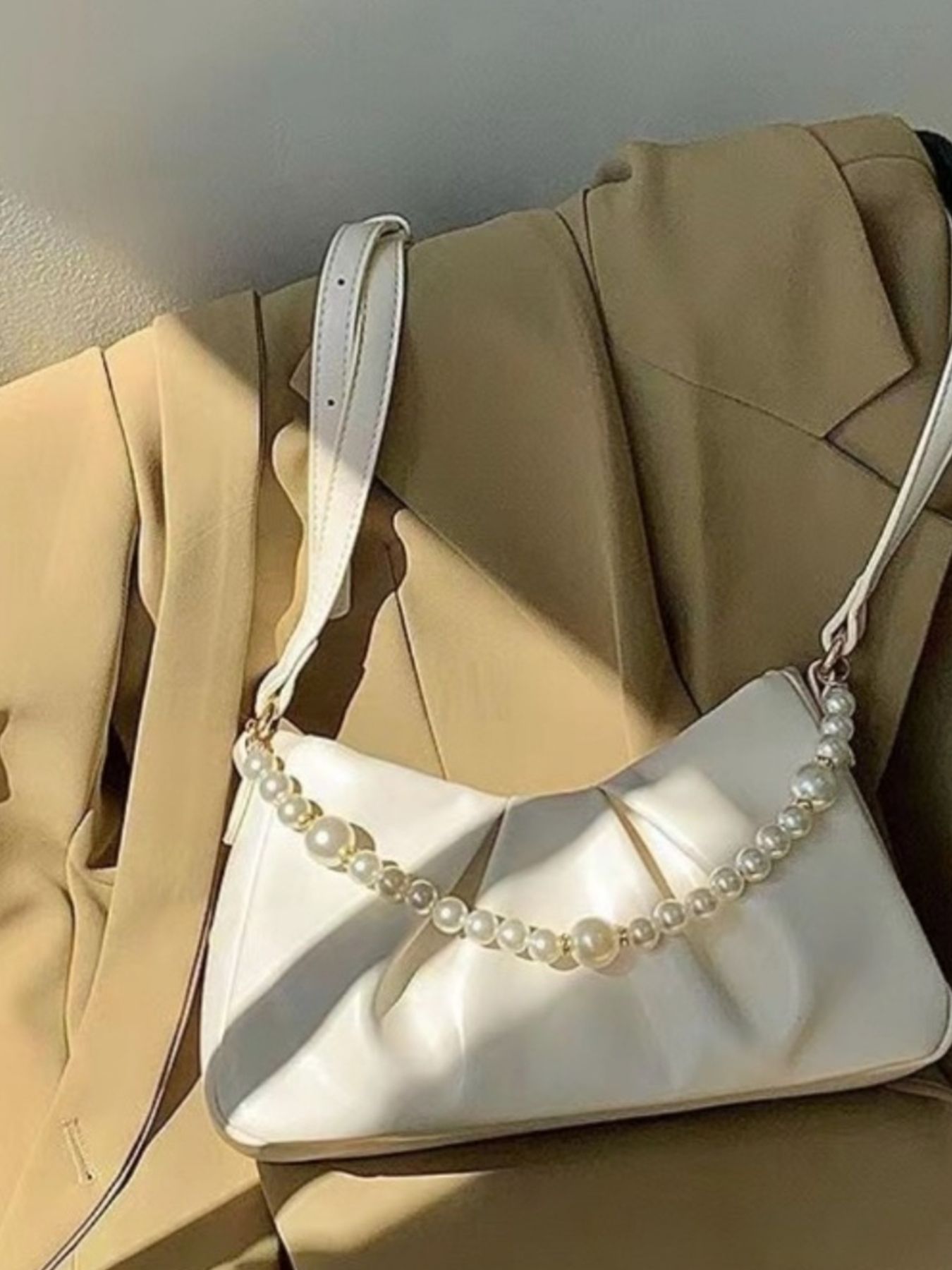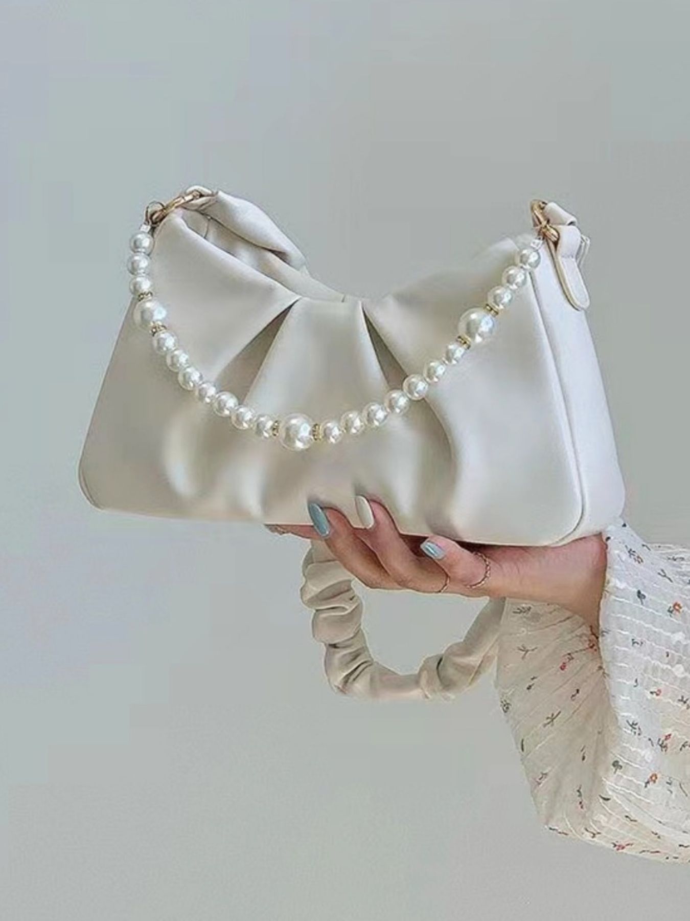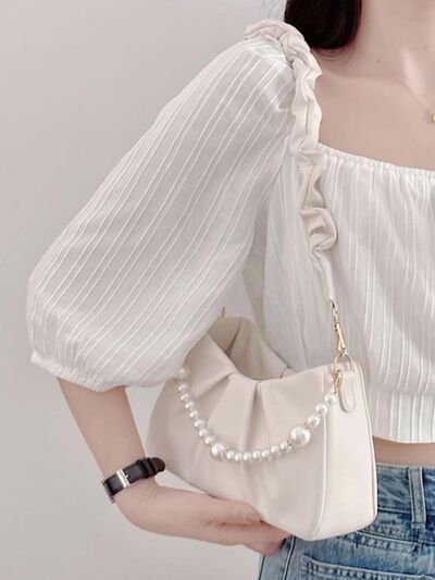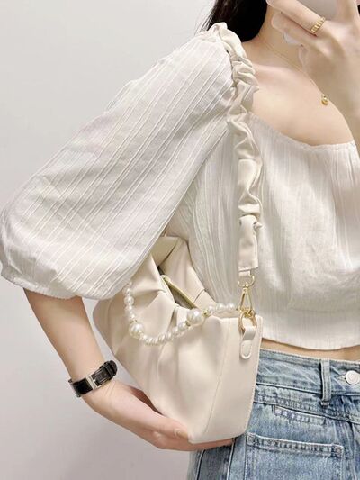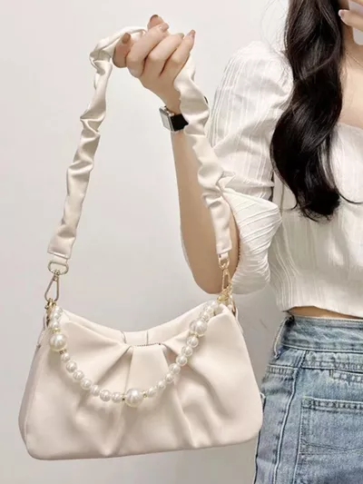 Pearl Embellished Ruched Shoulder Bag