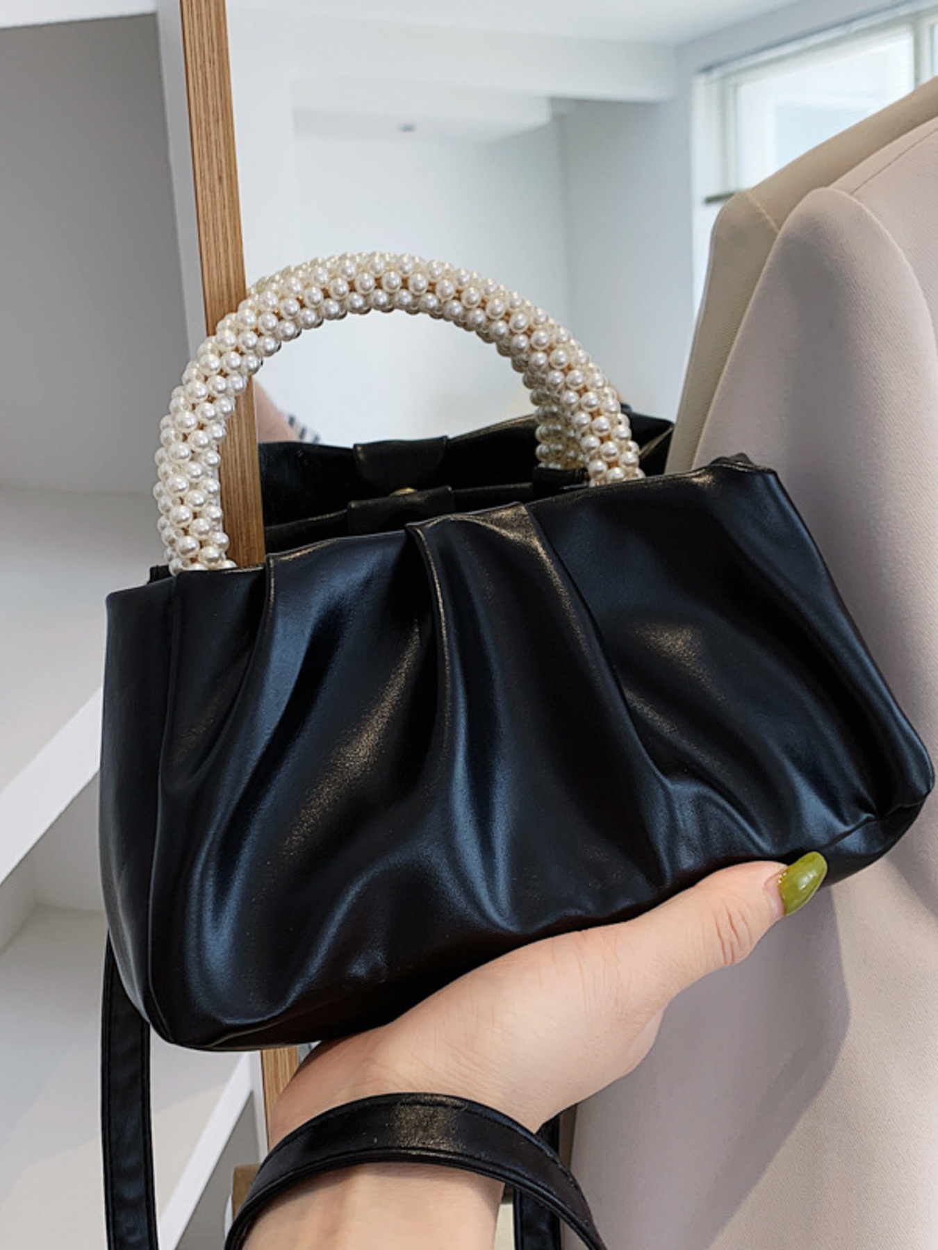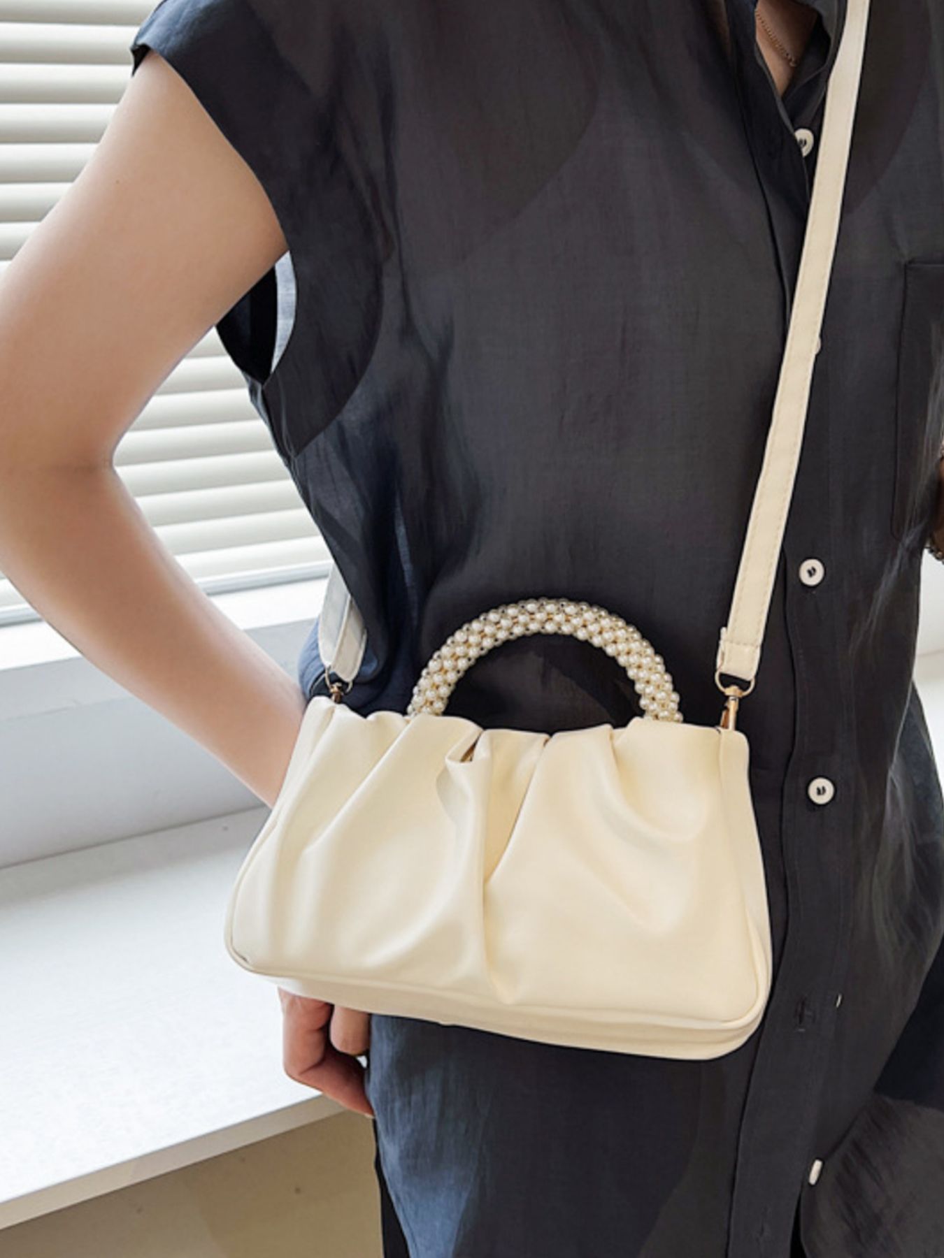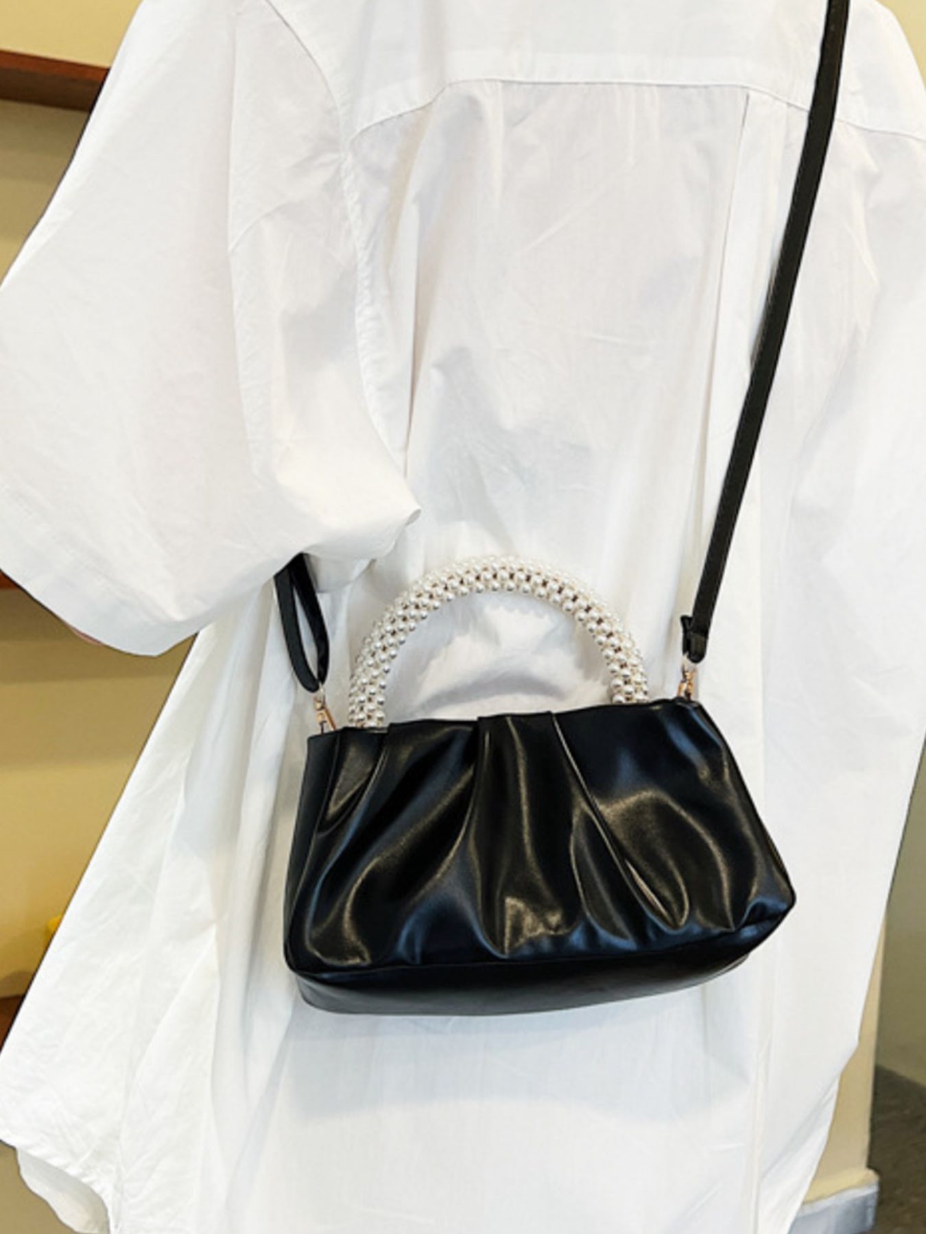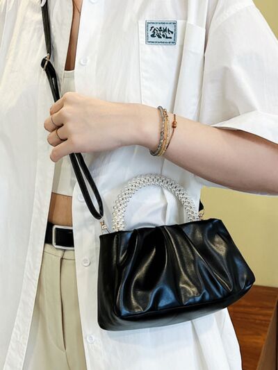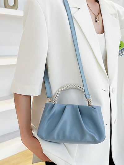 Pearl Handle Ruched Crossbody Bag