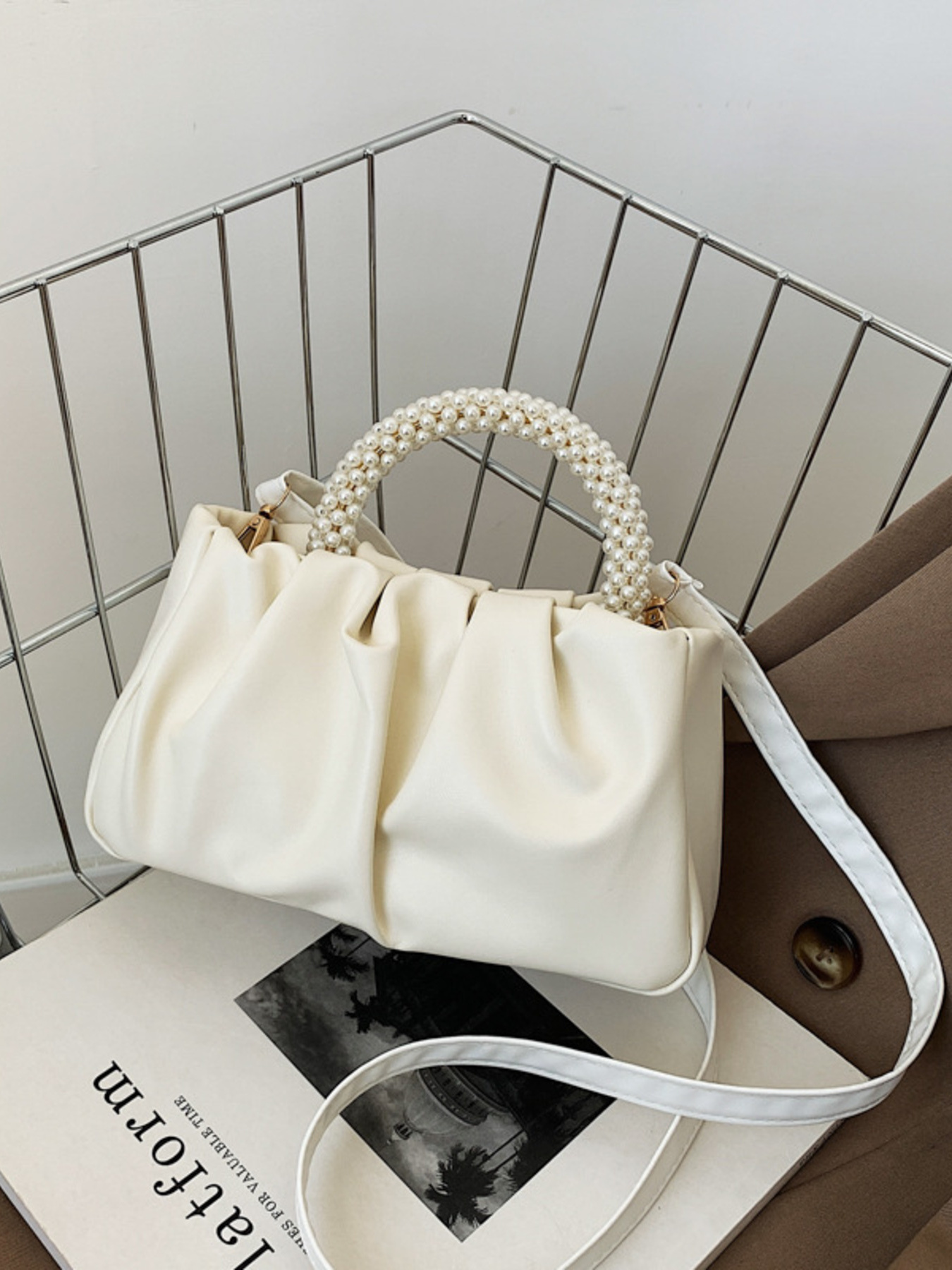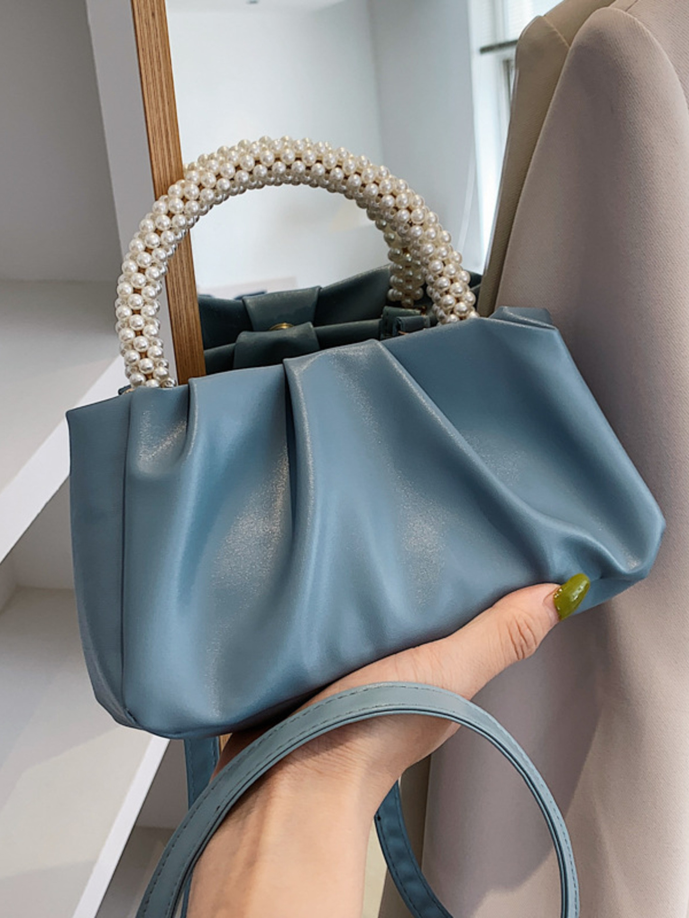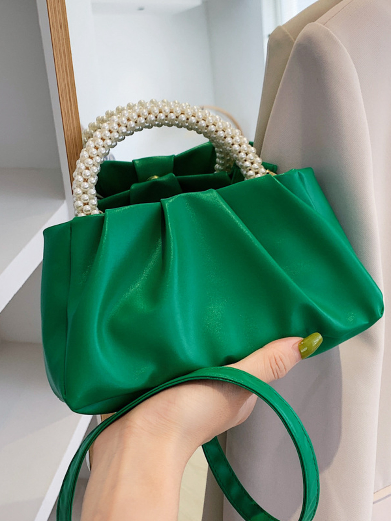 Pearl Handle Ruched Crossbody Bag