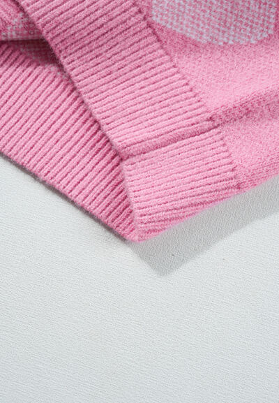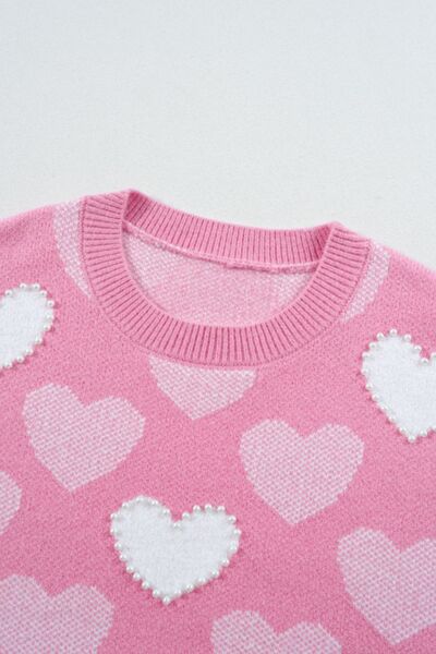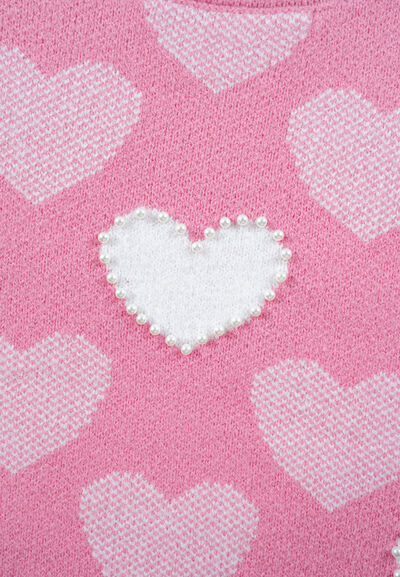 Pearl Trim Heart Round Neck Long Sleeve Sweater