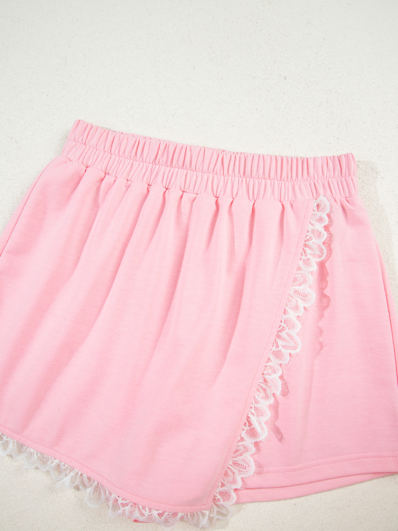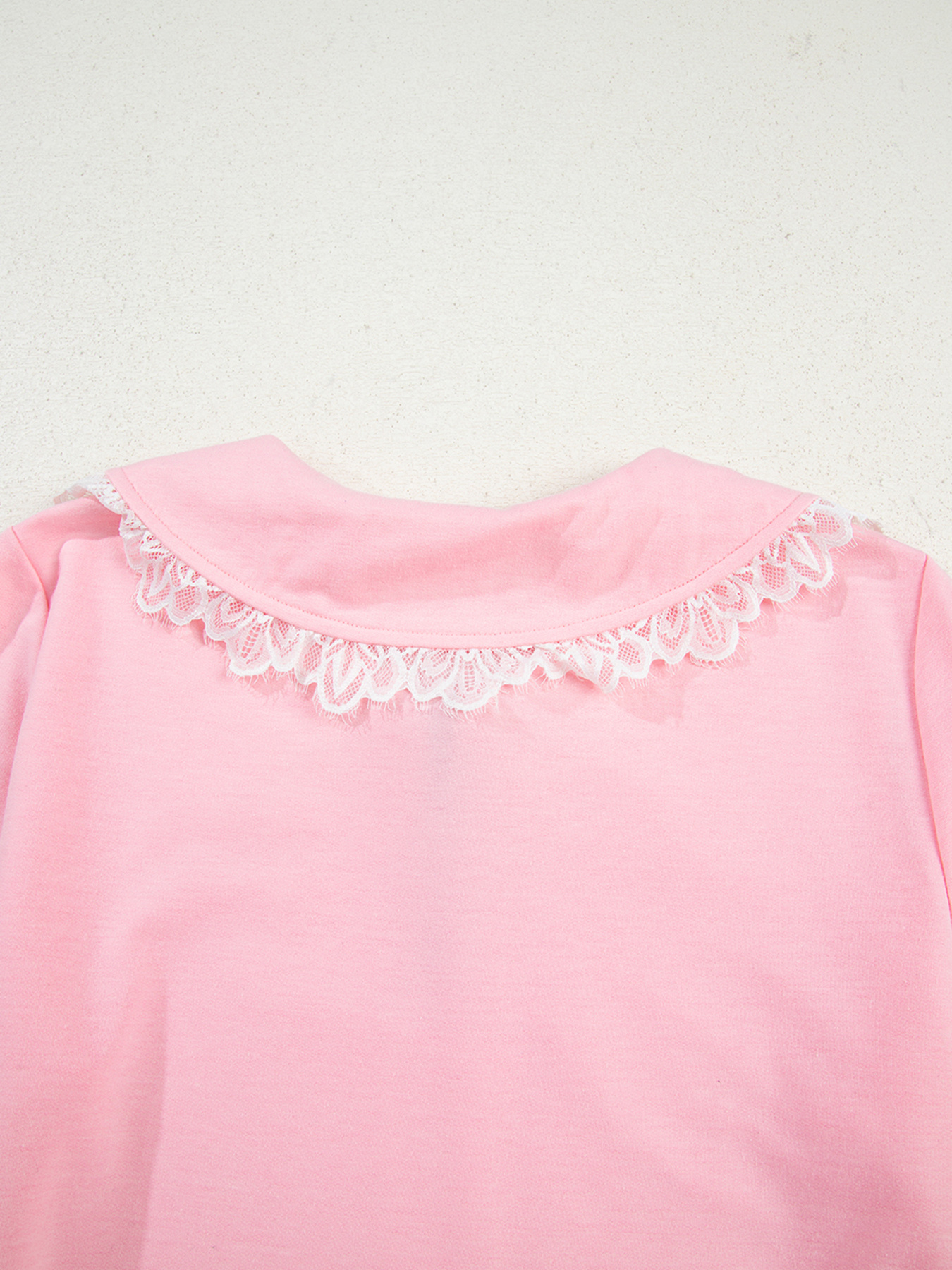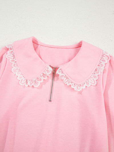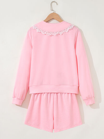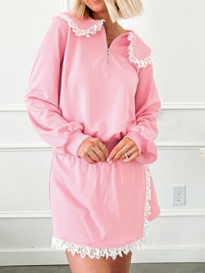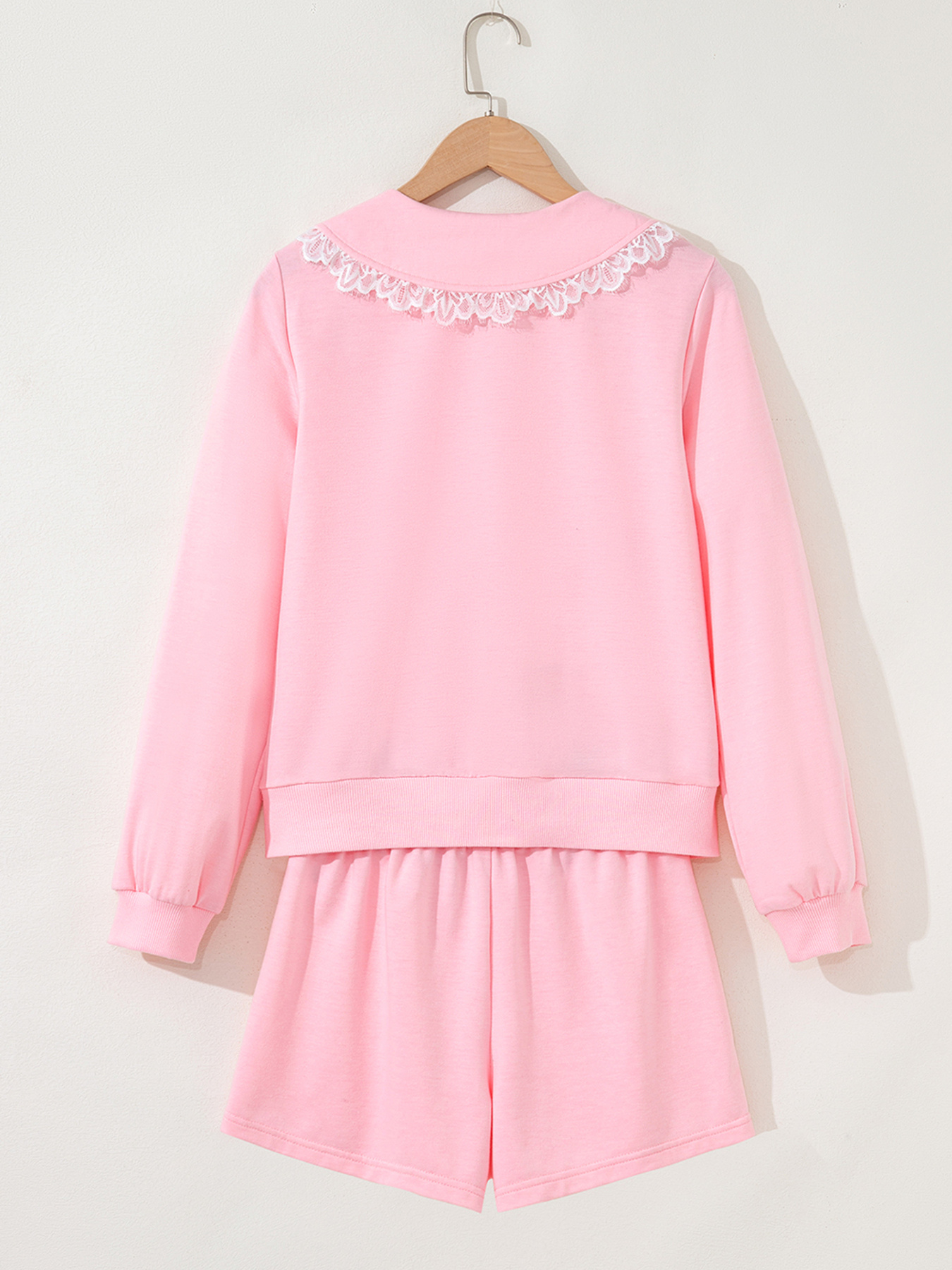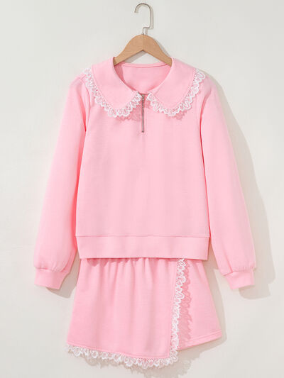 Peter Pan Lace Embellished Neck Sweatshirt and Skirt Two Piece Set