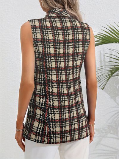 Plaid Button Up Collared Neck Vest