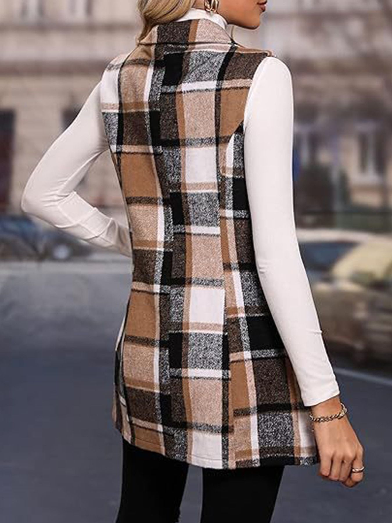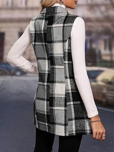 Plaid Button Up Vest Coat