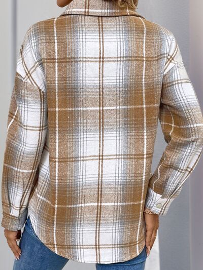 Plaid Collared Neck Half Zip Long Sleeve Top