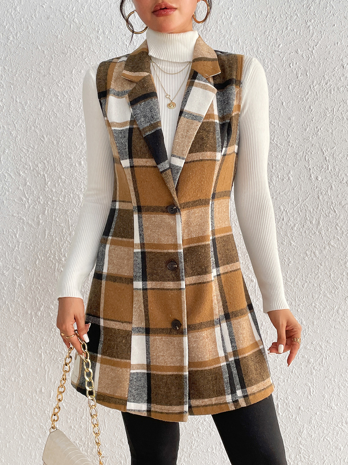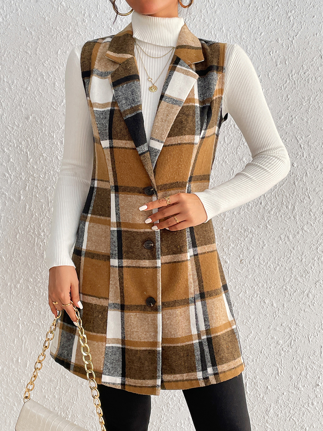 Plaid Lapel Collar Vest