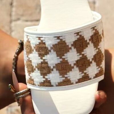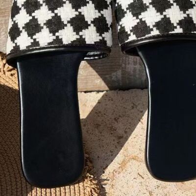 Plaid Open Toe Flat Sandals