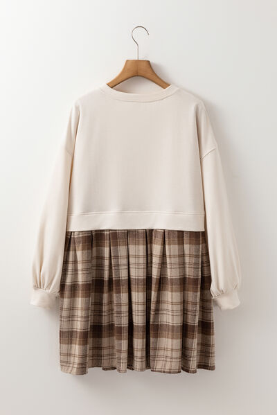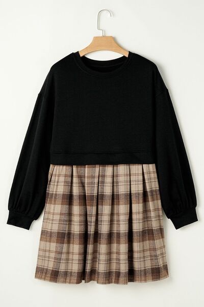 Plaid Round Neck Long Sleeve Mini Dress