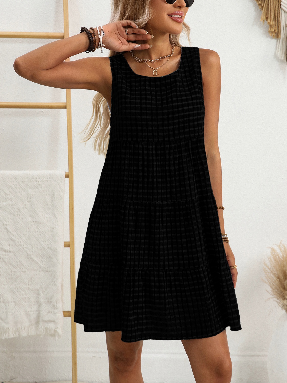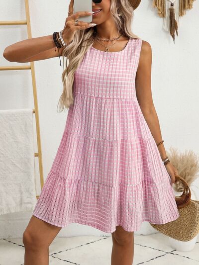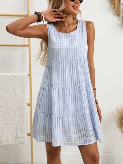 Plaid Round Neck Sleeveless Mini Dress