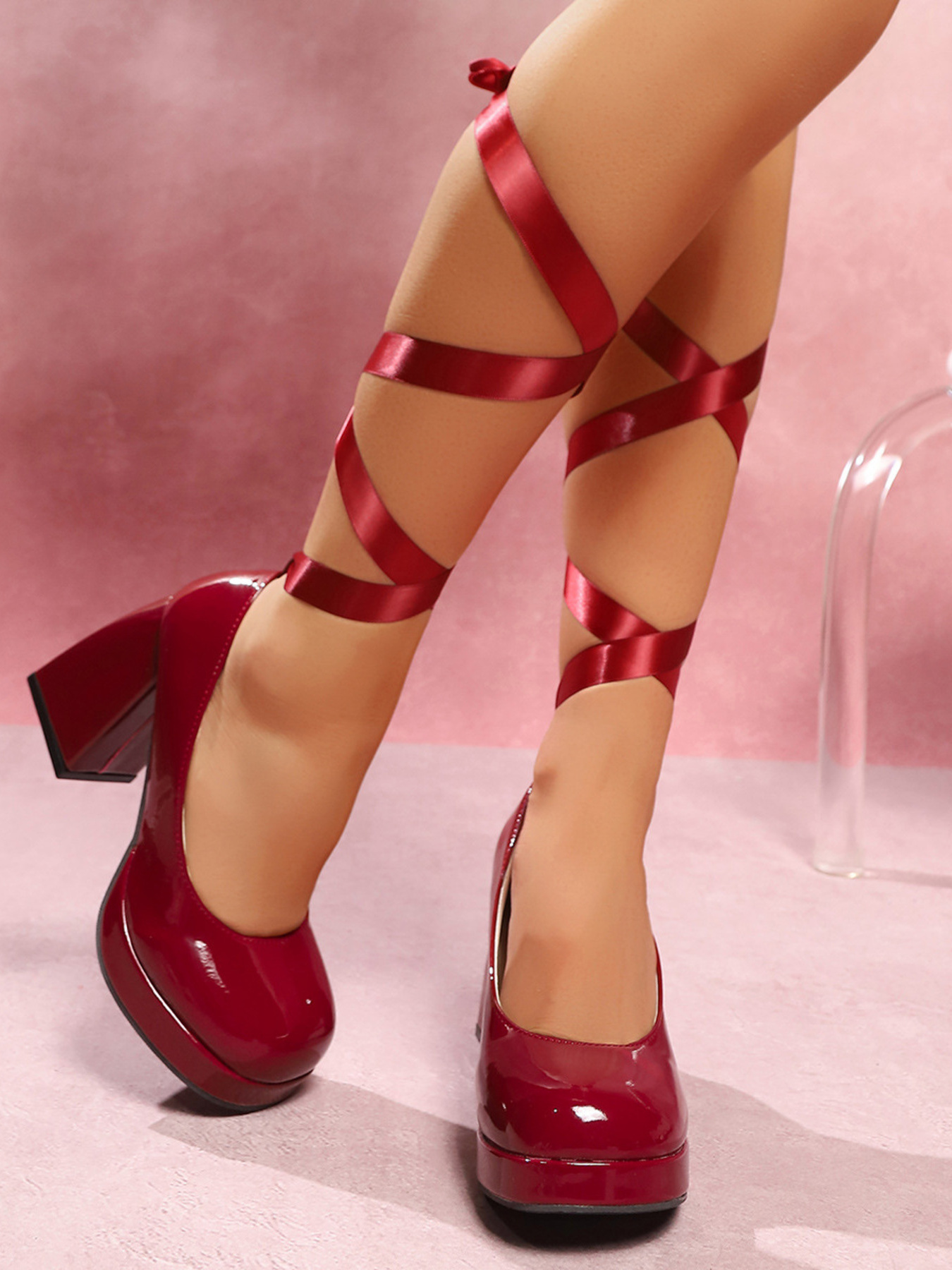 Platform Block Heel Pumps with Ankle Wrap Straps