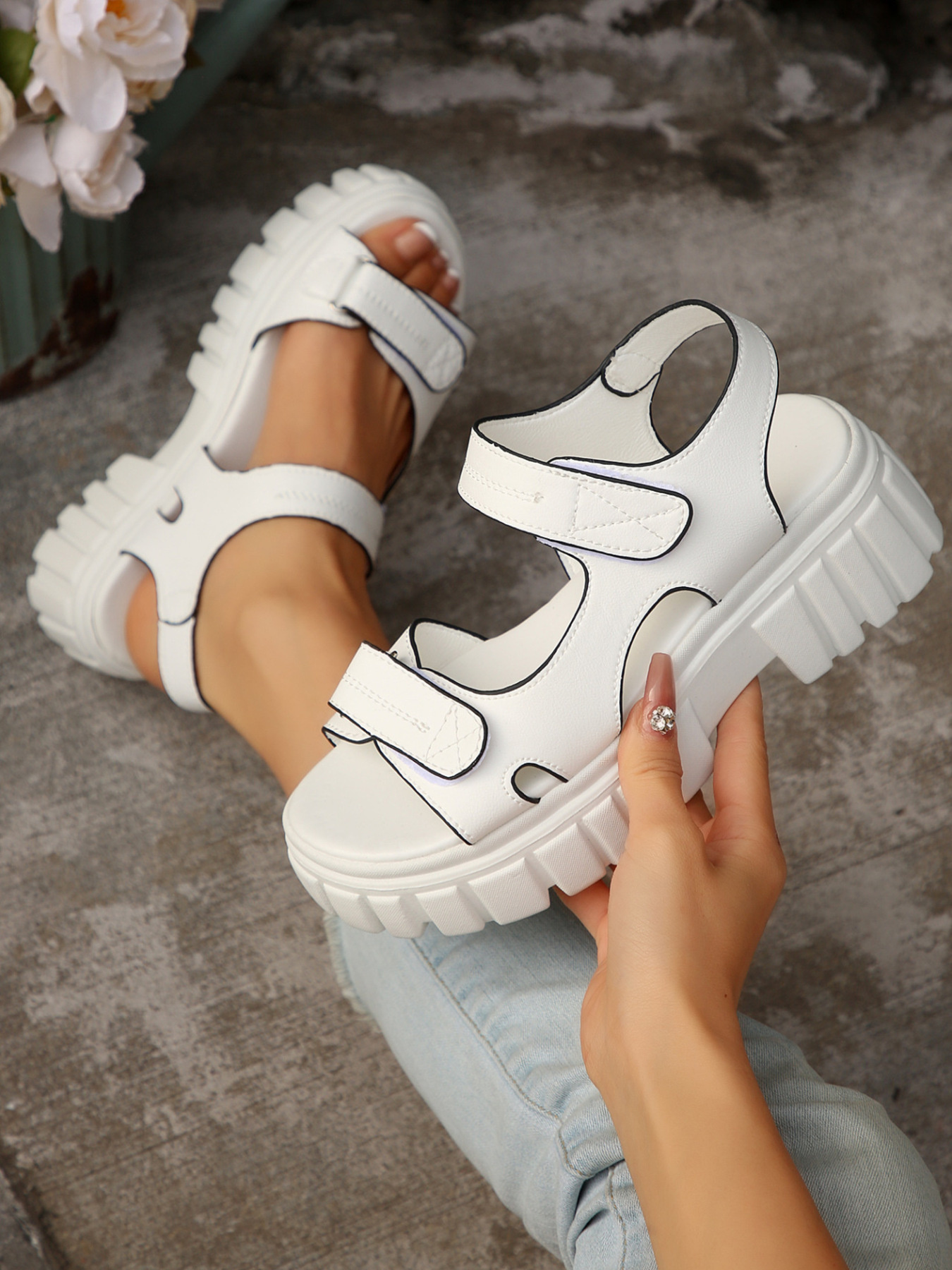 Platform Chunky Velcro Strap Sandals