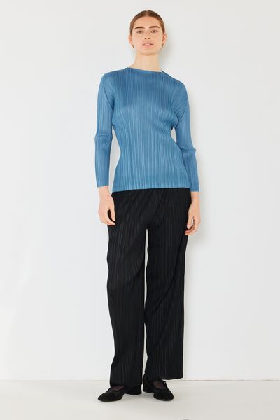 Pleated Long Sleeve Boatneck Top