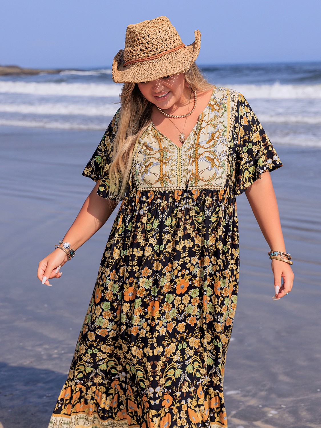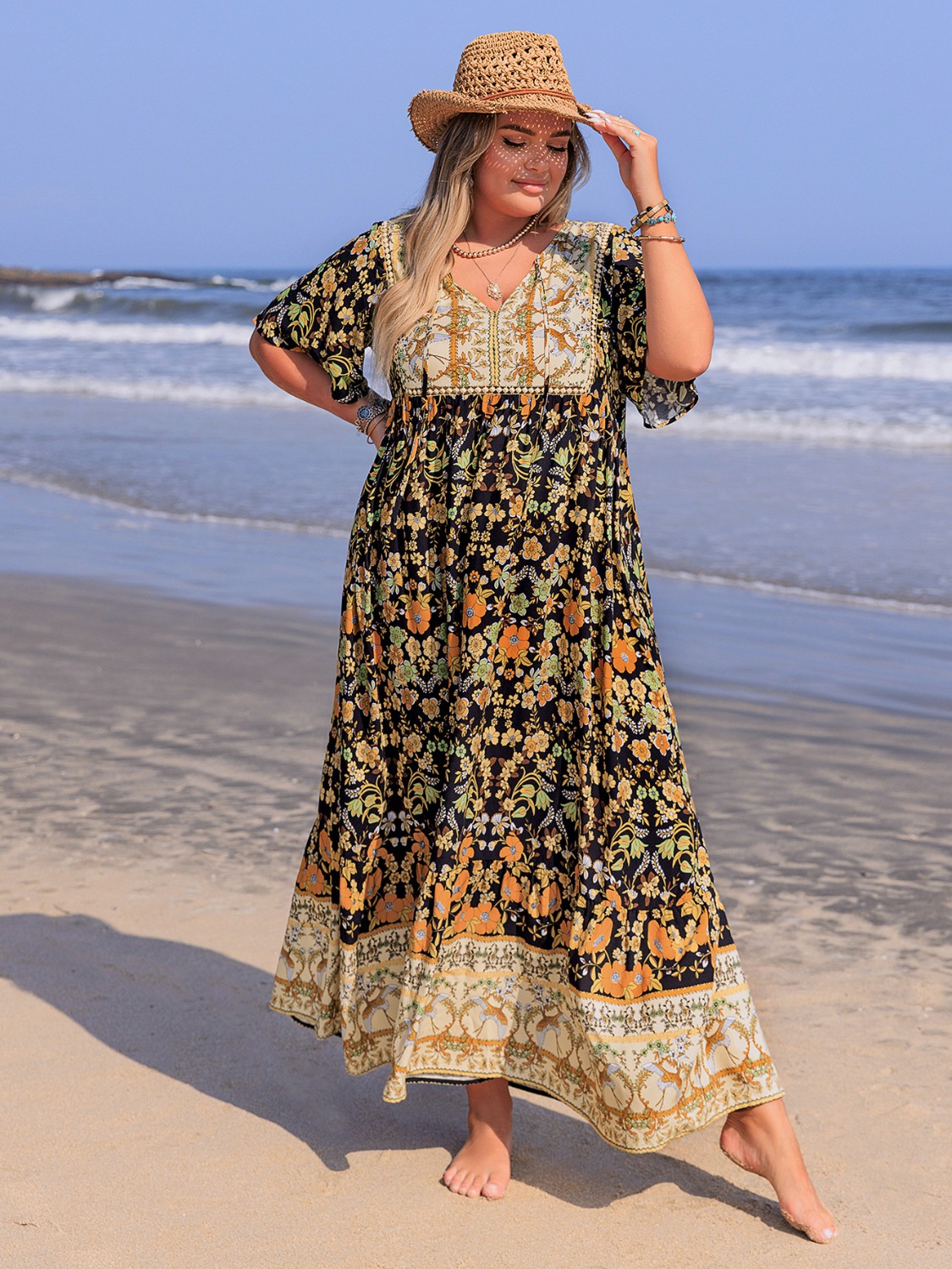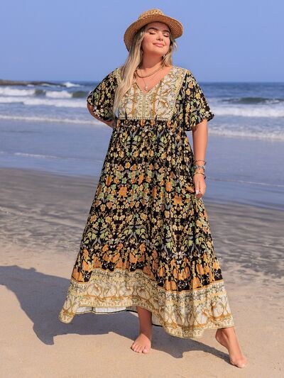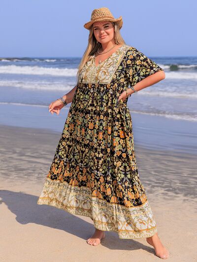 Plus Size Bohemian Floral Tiered Maxi Dress