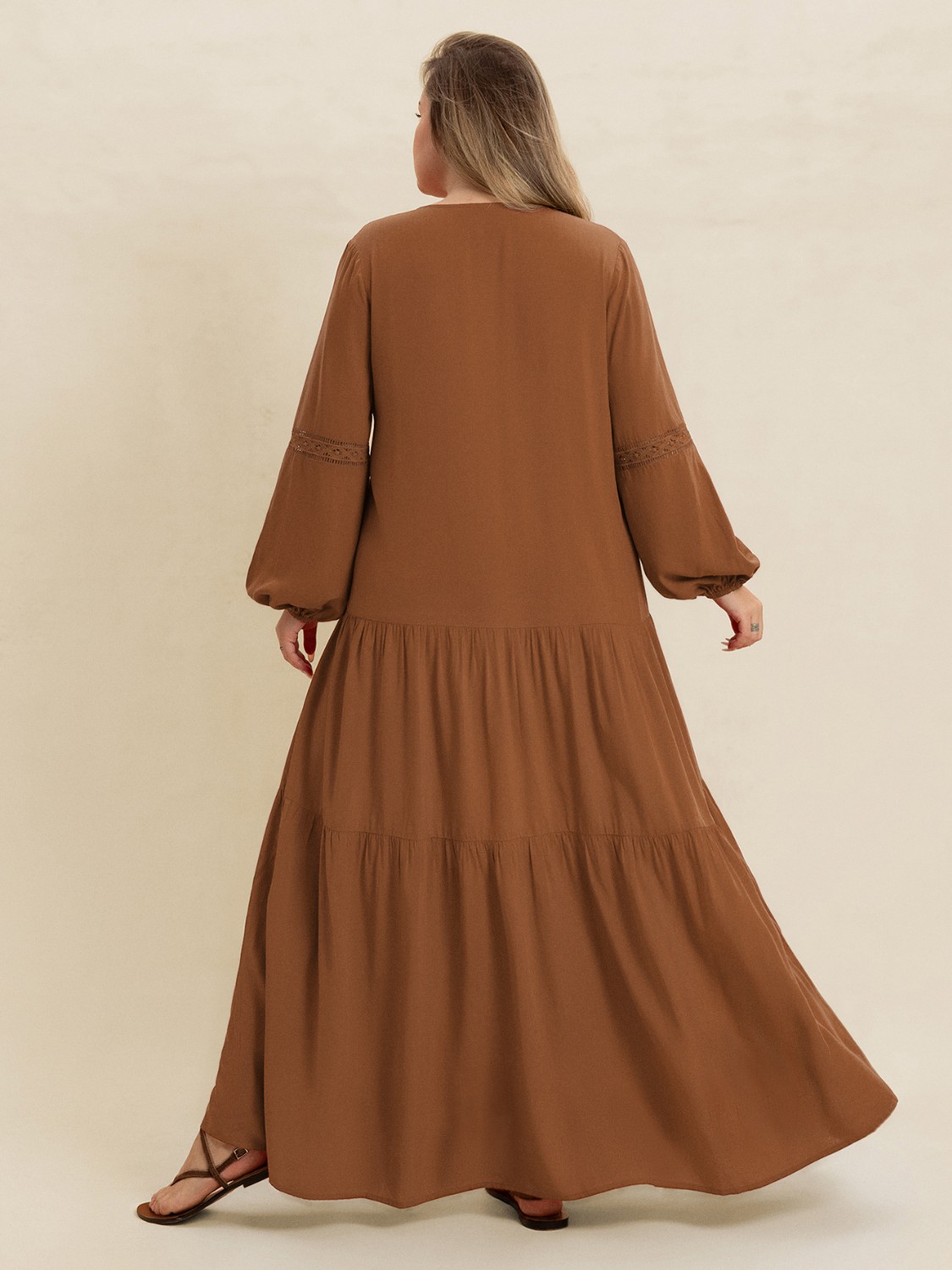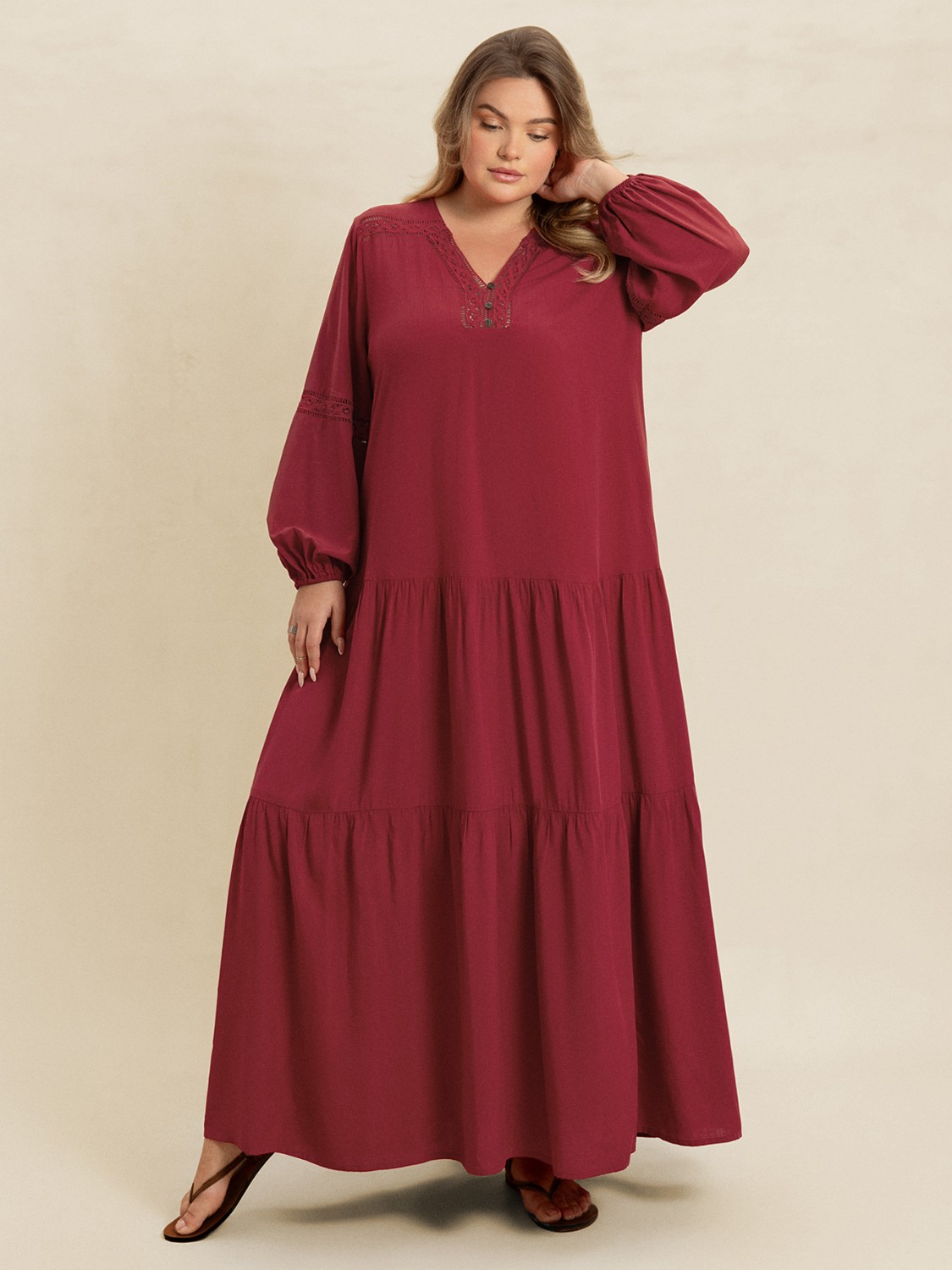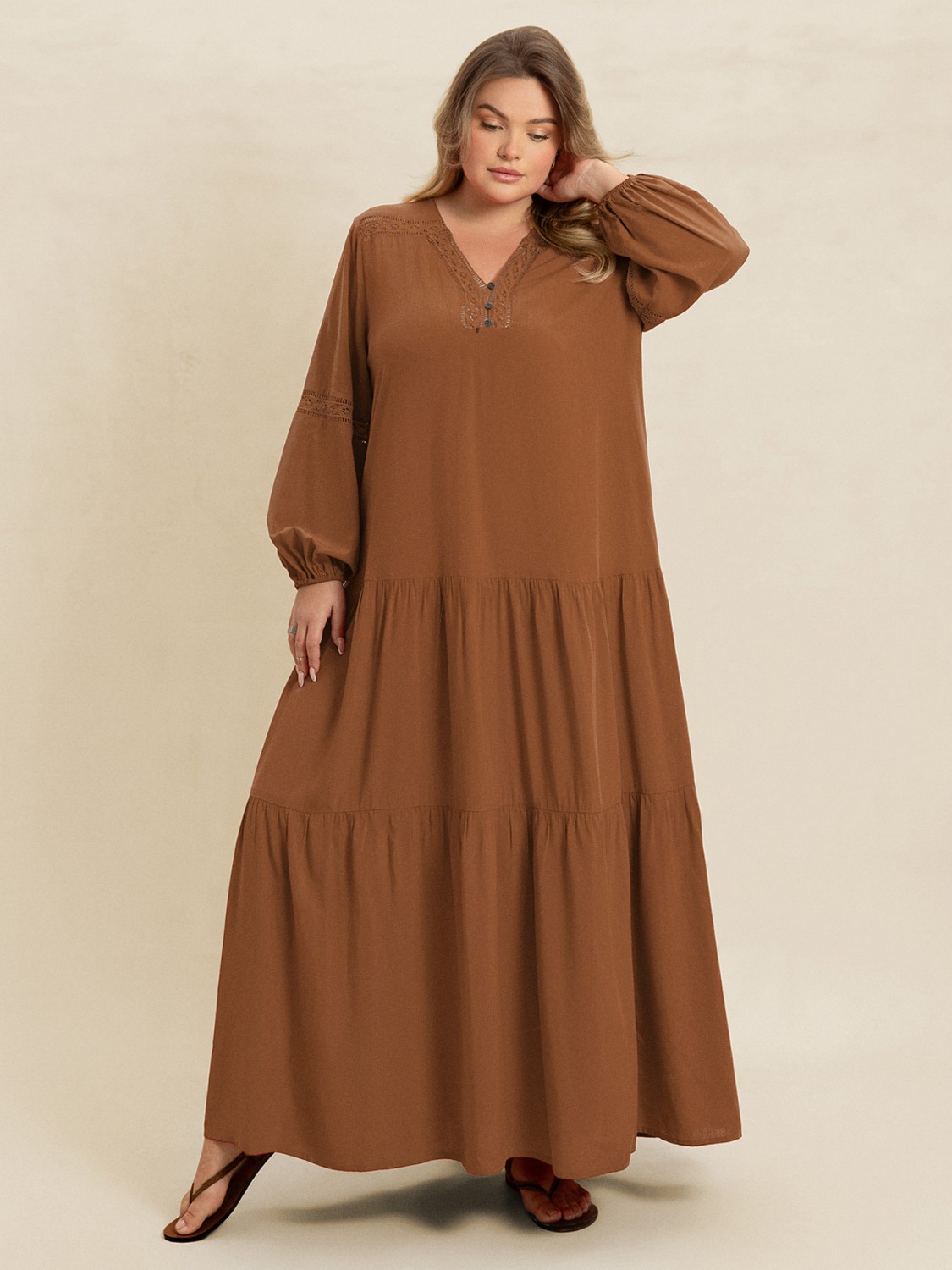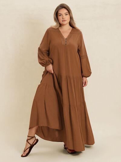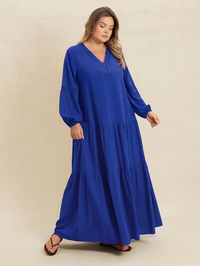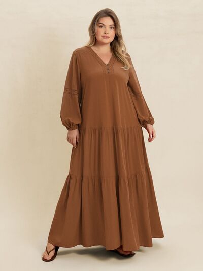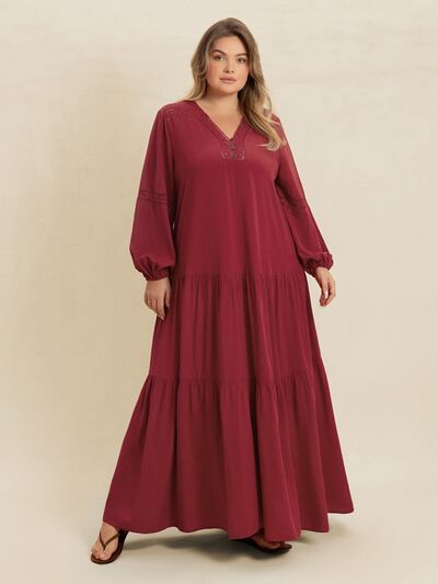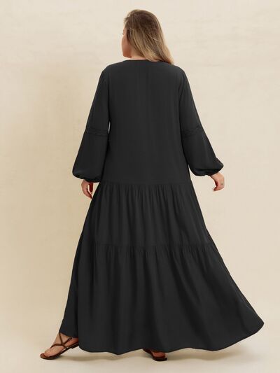 Plus Size Bohemian Tiered Maxi Dress with Balloon Sleeves