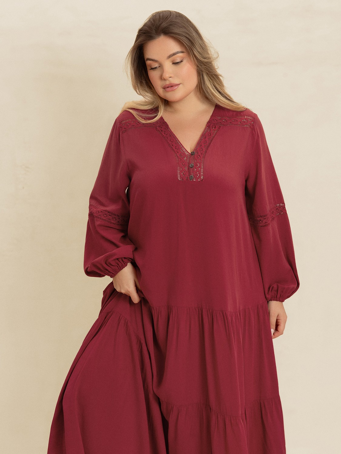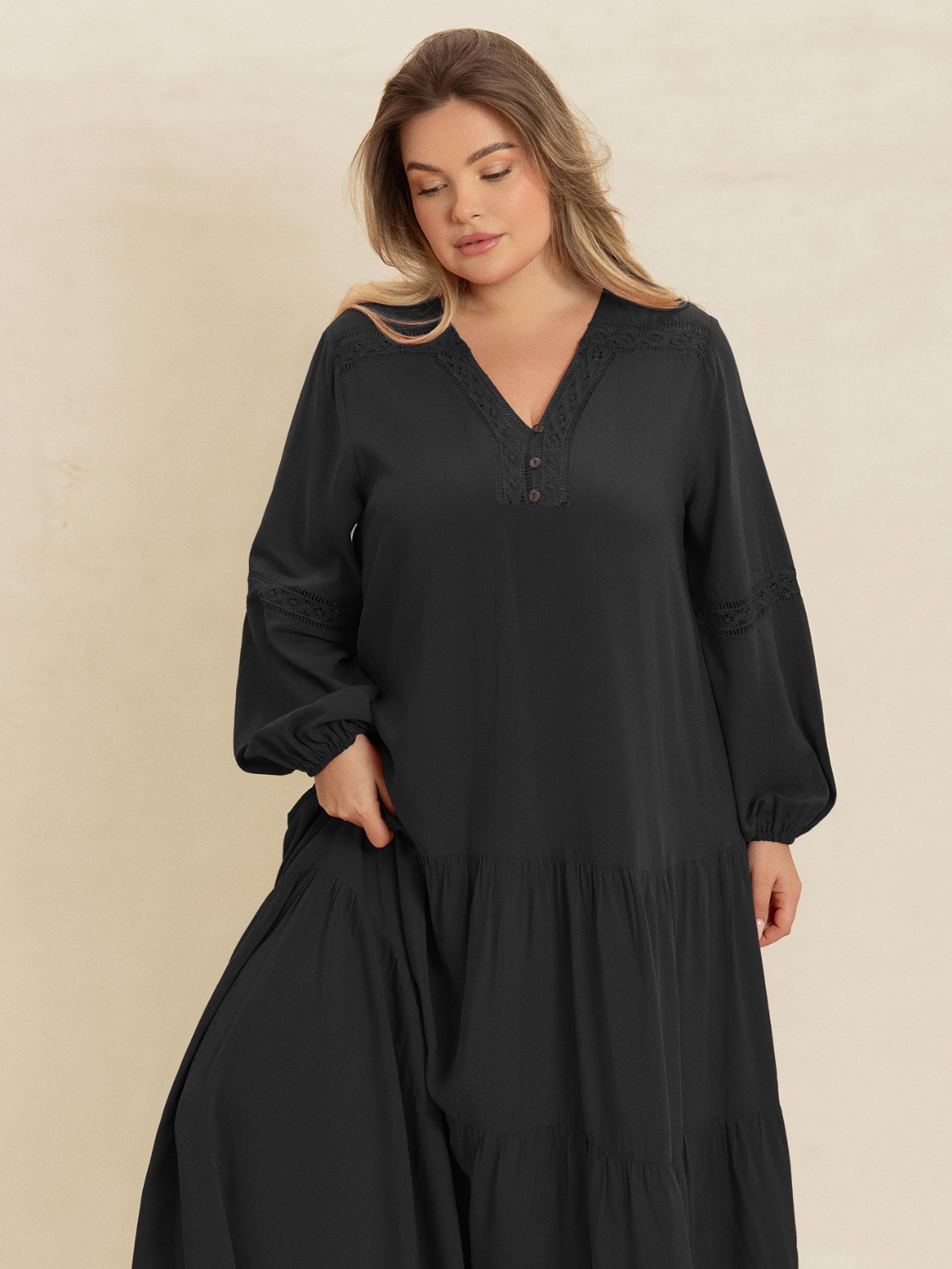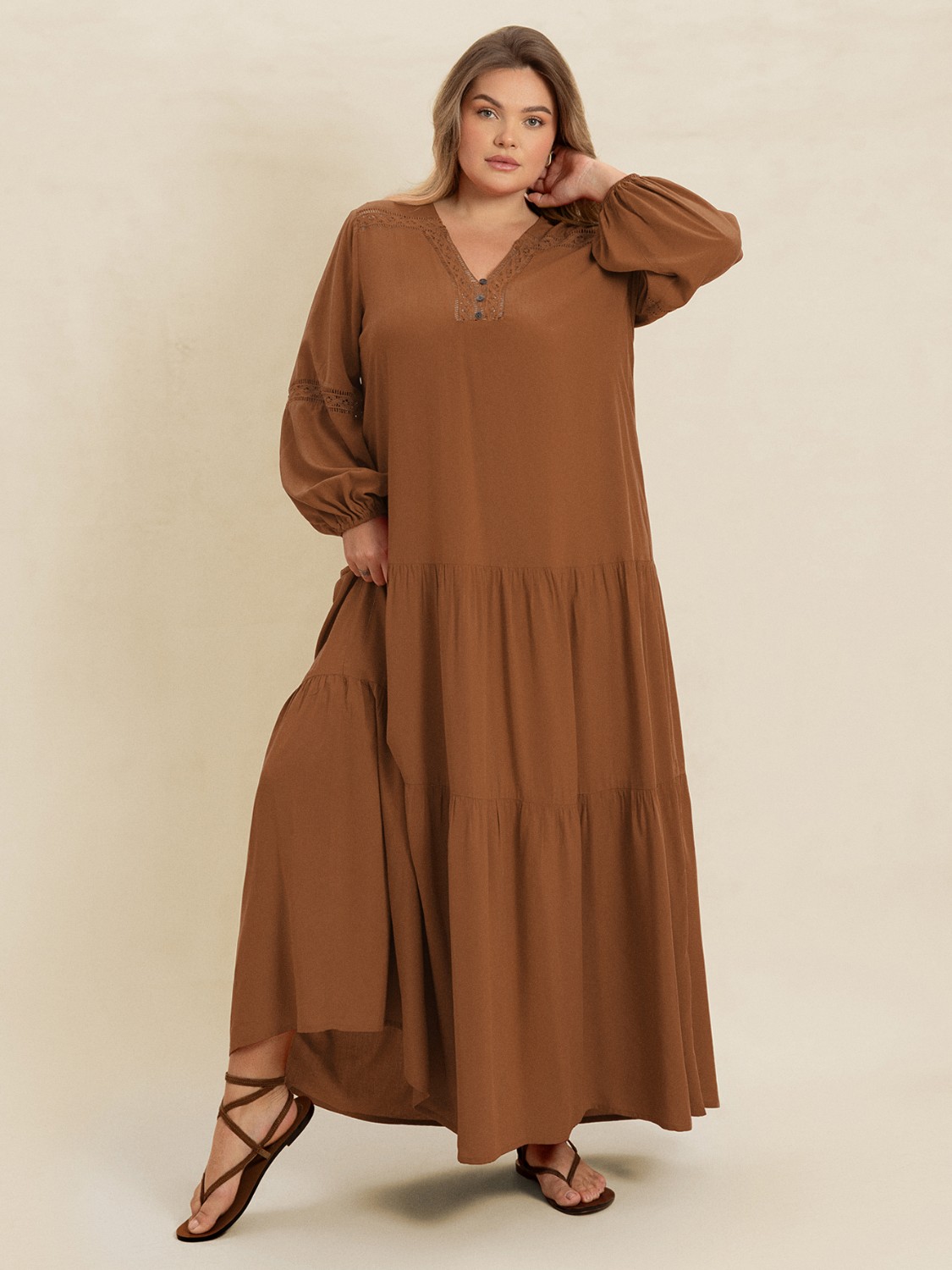 Plus Size Bohemian Tiered Maxi Dress with Balloon Sleeves