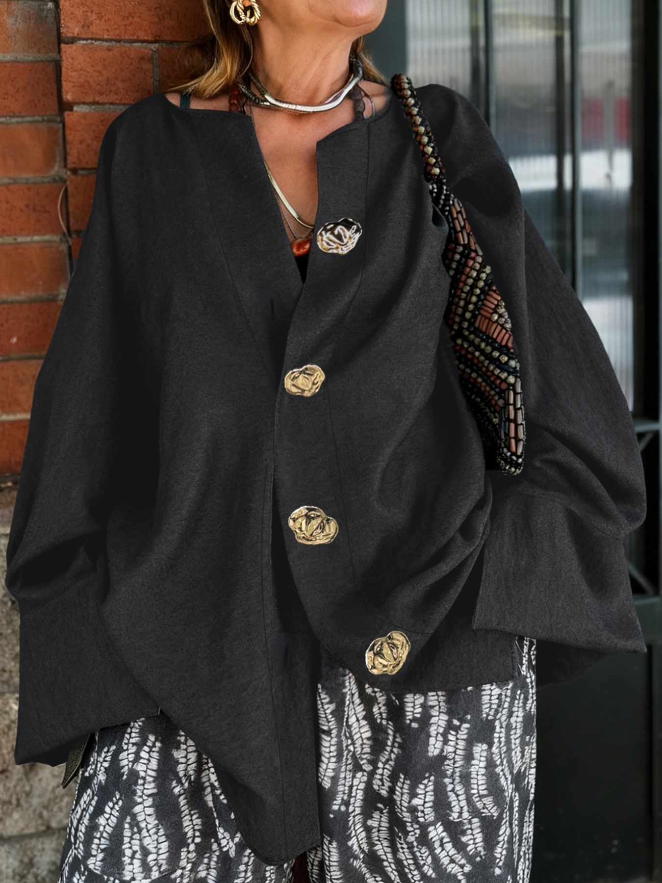 Plus Size Button-Down Oversized Outerwear