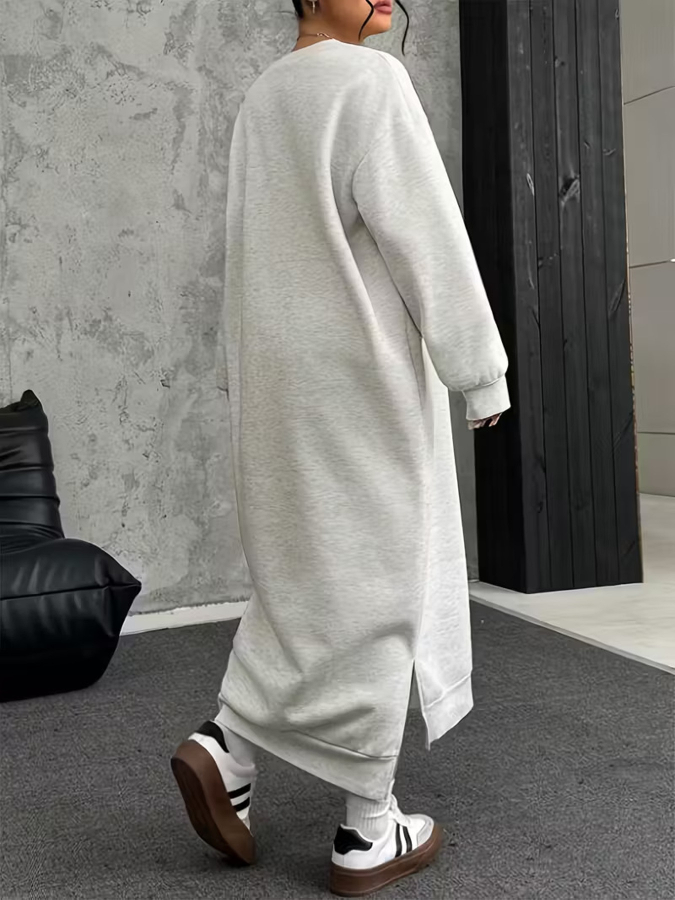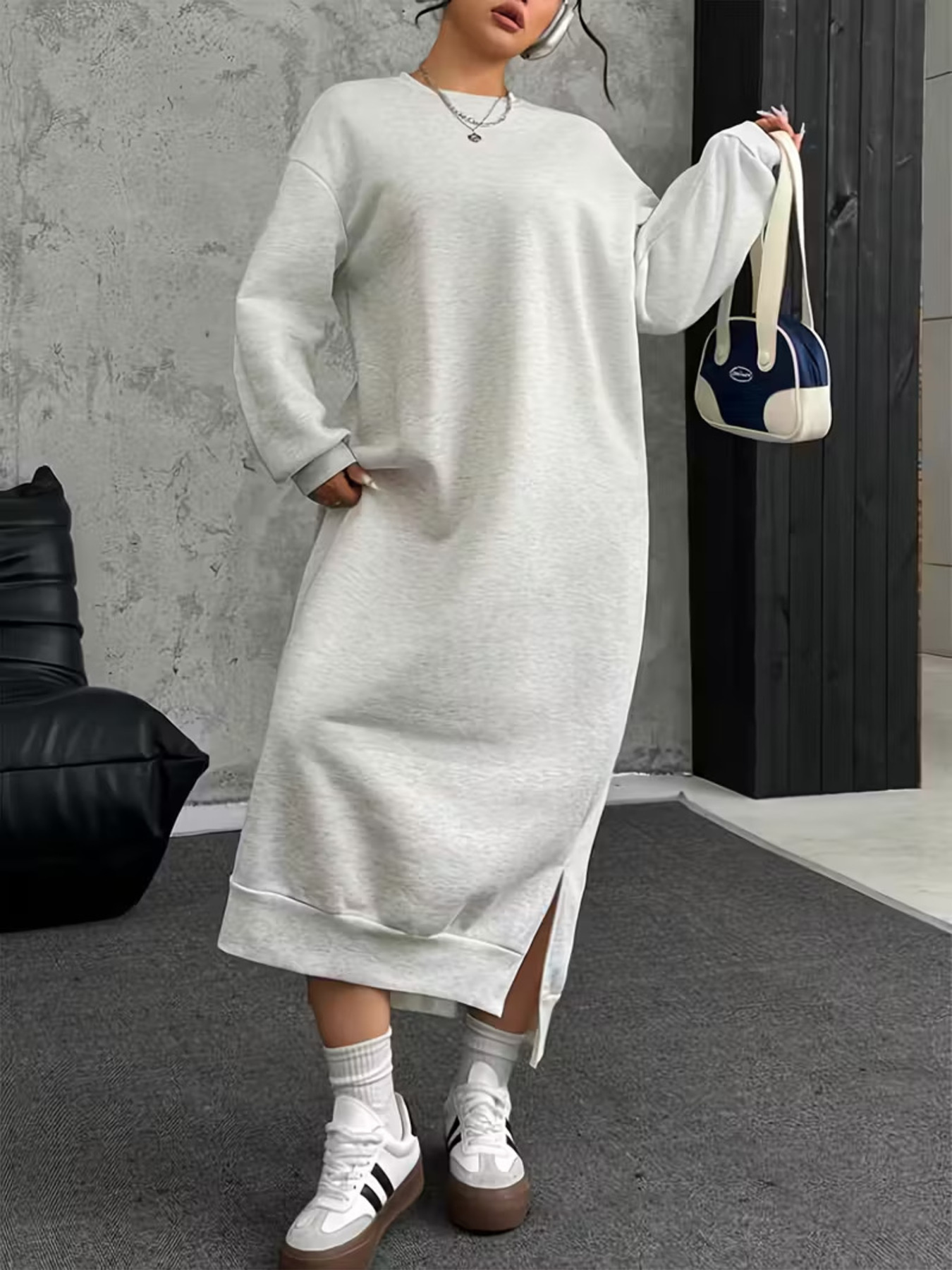 Plus Size Casual Slit Long Sleeve Sweatshirt Dress