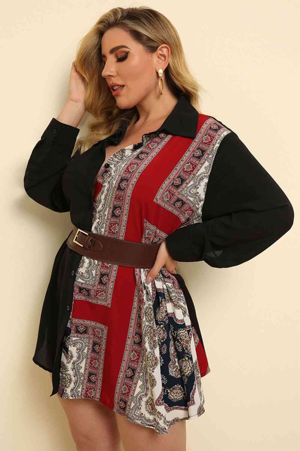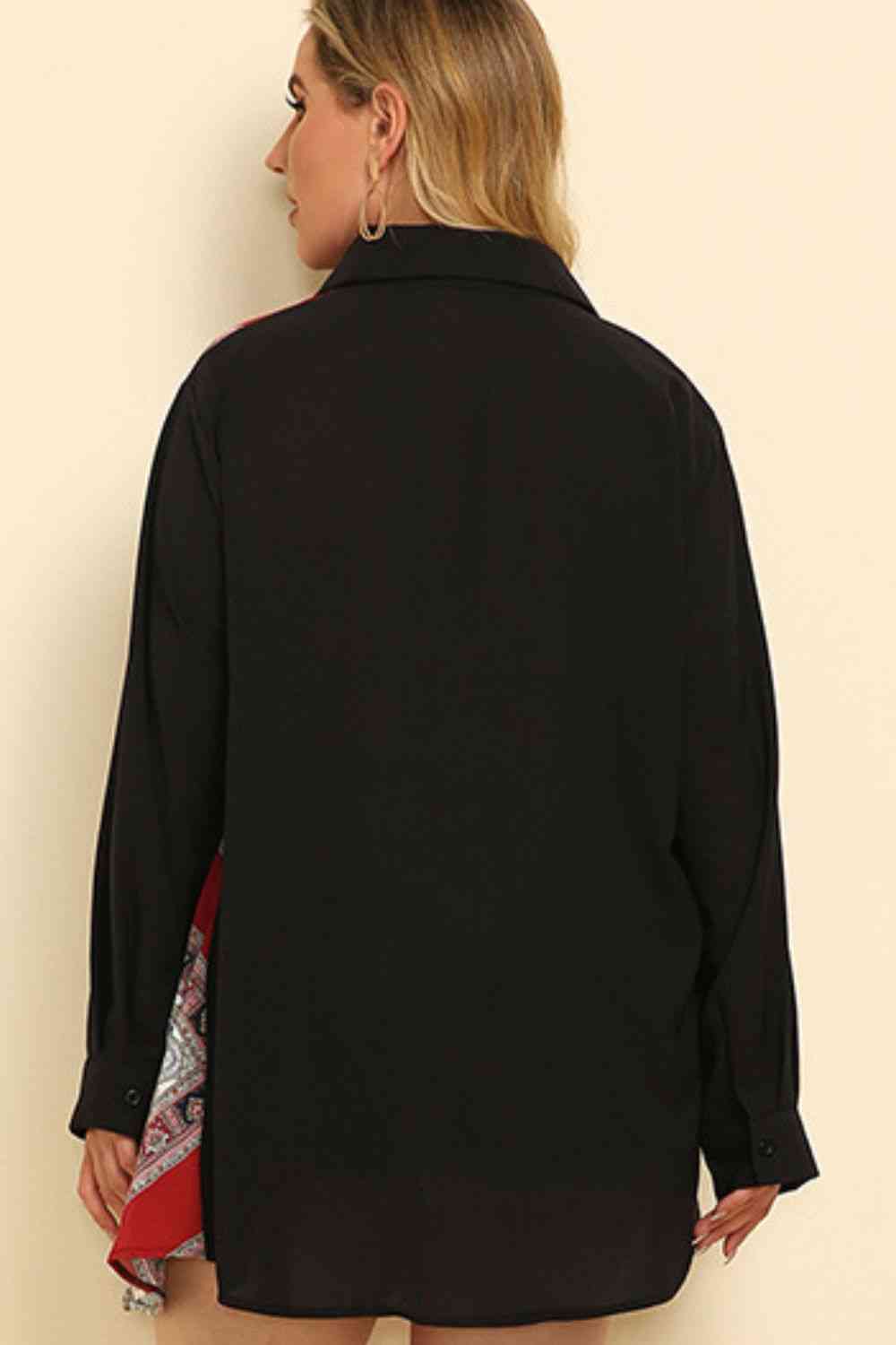 Plus Size Color Block Button Front Shirt