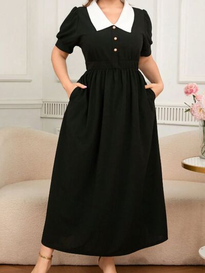 Plus Size Contrast Collar Short Sleeve Dress