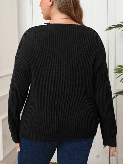 Plus Size Contrast Dropped Shoulder Long Sleeve Sweater