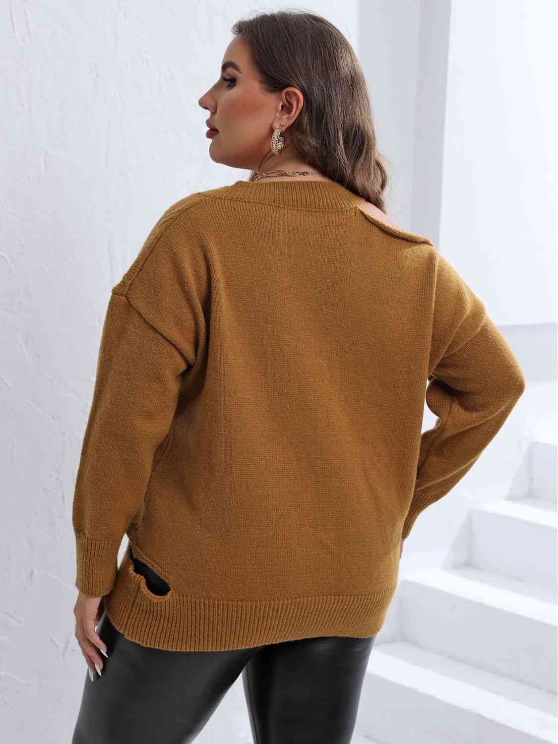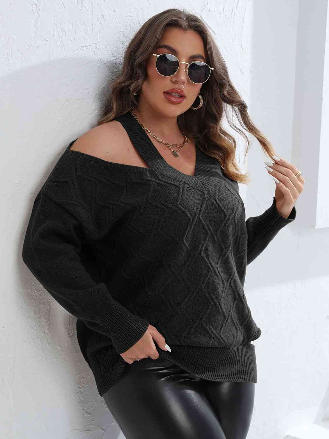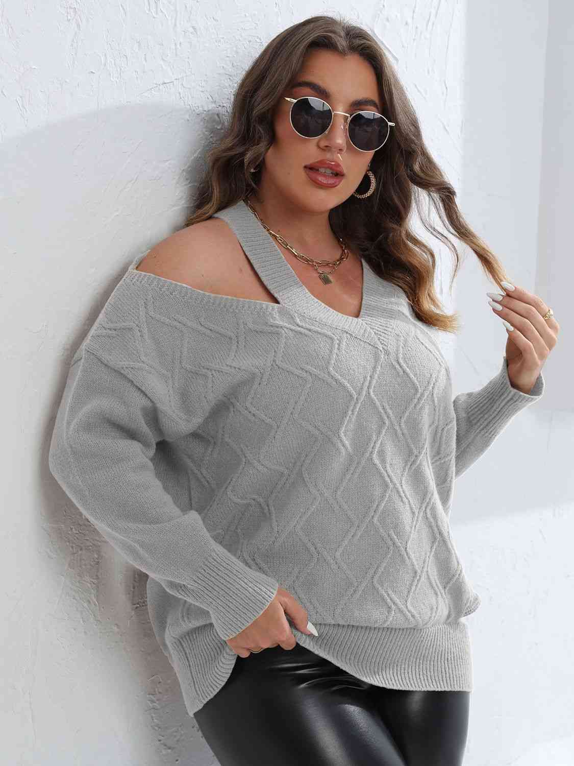 Plus Size Cutout V-Neck Sweater