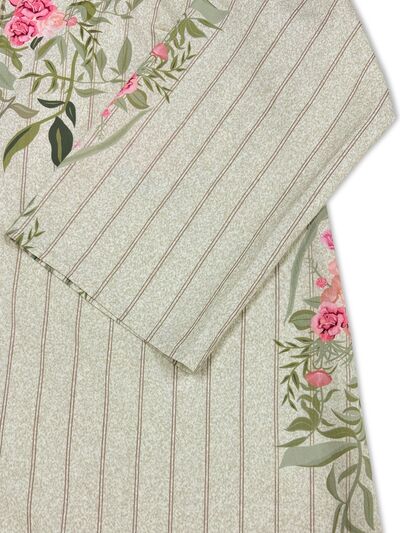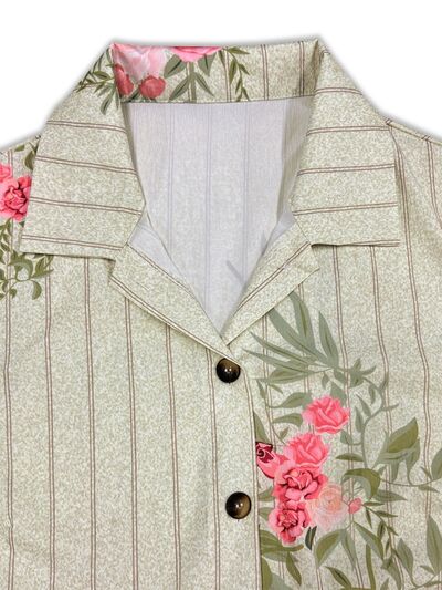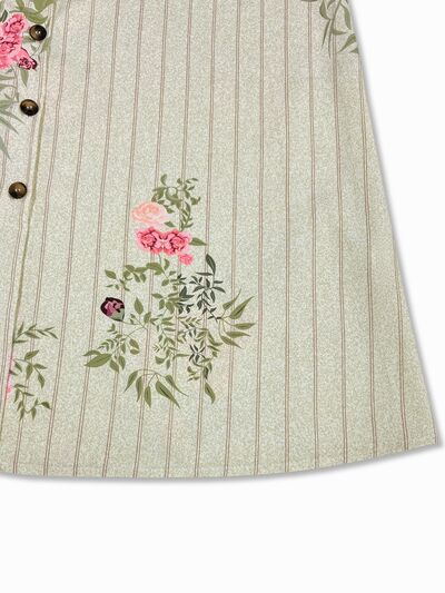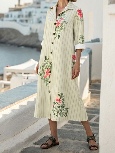 Plus Size Floral Striped Button-Down Midi Shirt Dress