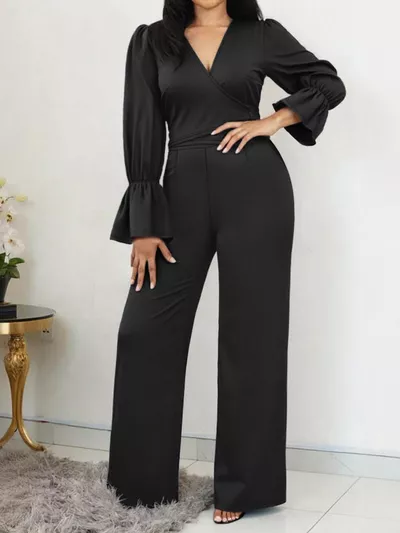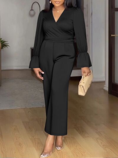 Plus Size Flounce Sleeve Top and Pants Set
