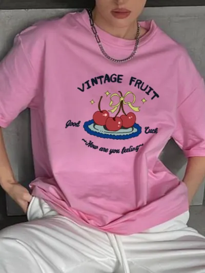 Plus Size Fruit Graphic Round Neck T-Shirt
