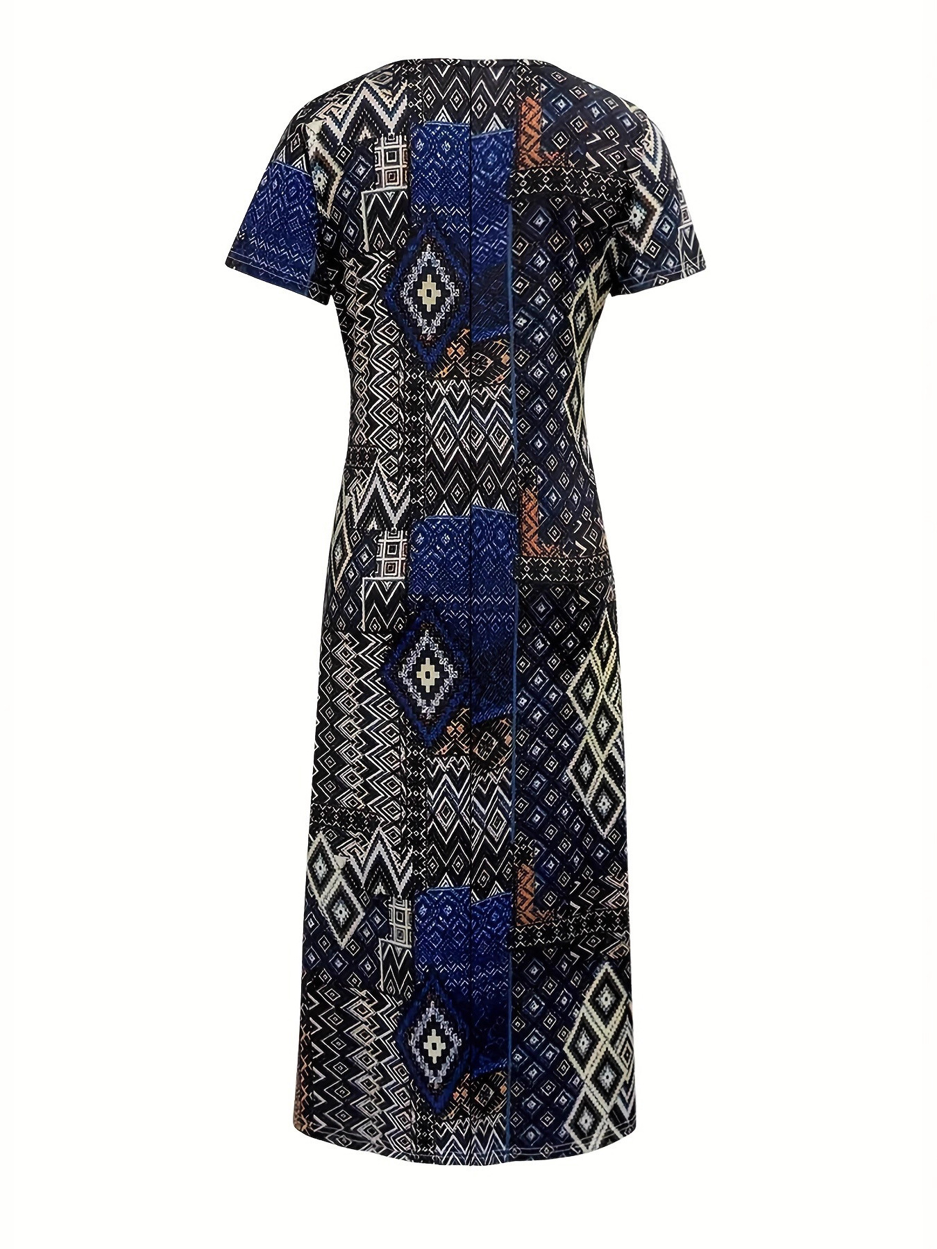 Plus Size Geometric Print V-Neck Short Sleeve Dress
