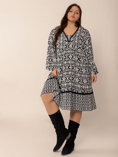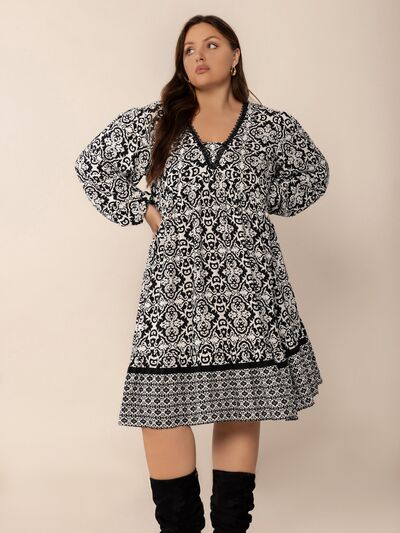 Plus Size Lace Detail Printed Balloon Sleeve Dress