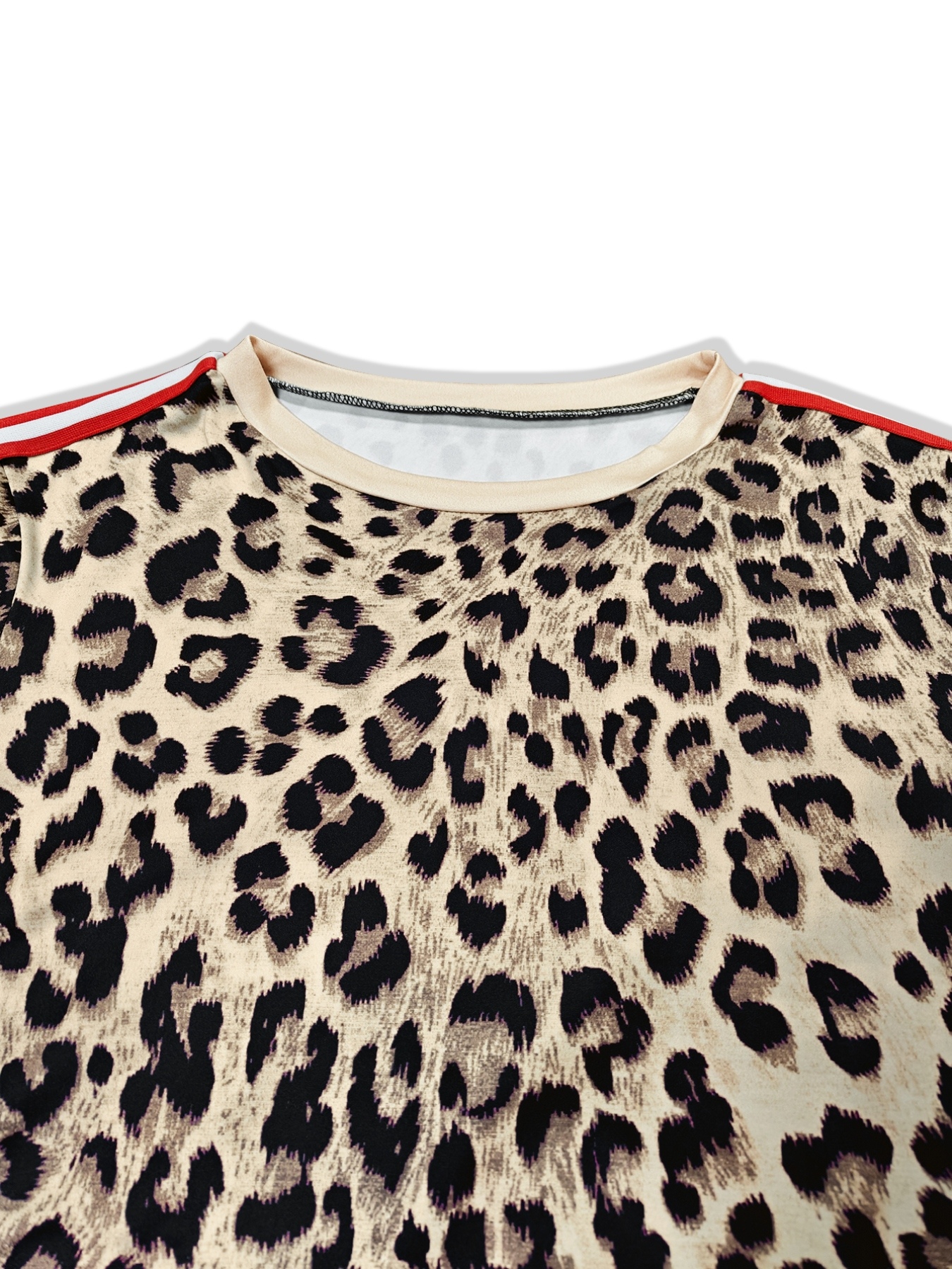 Plus Size Leopard Print Long Sleeve Top and Pants Set