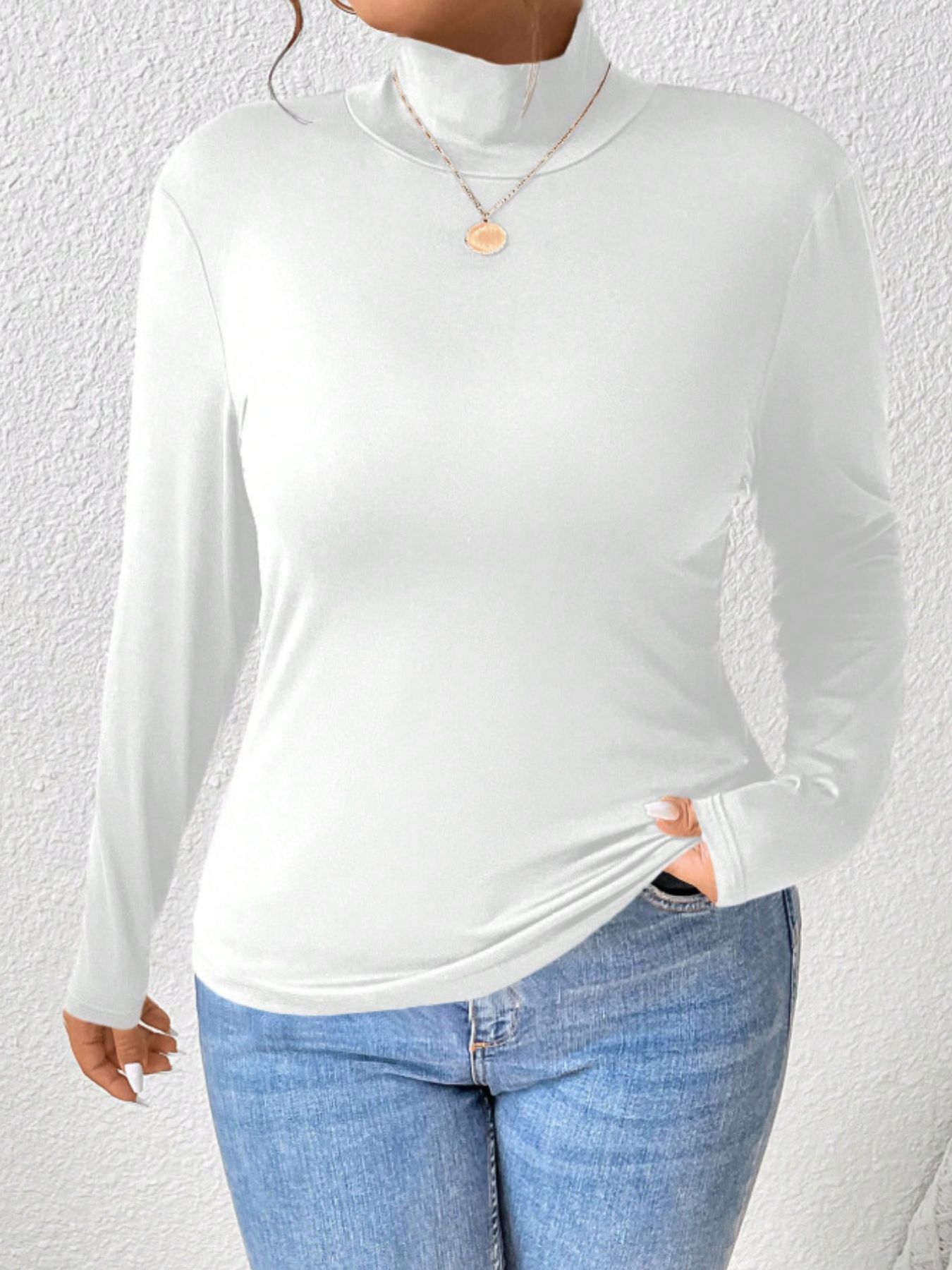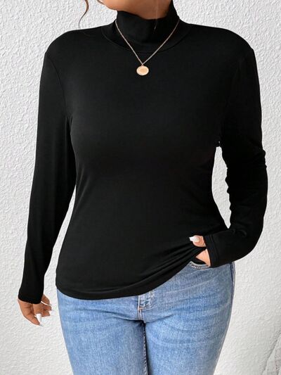 Plus Size Long Sleeve Fitted Turtleneck T-Shirt