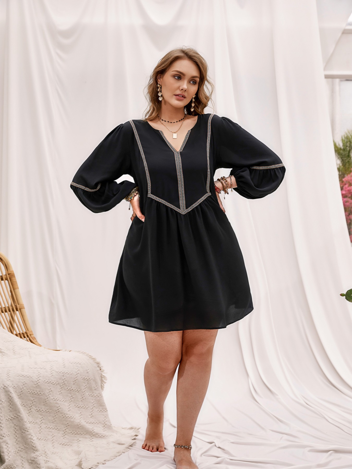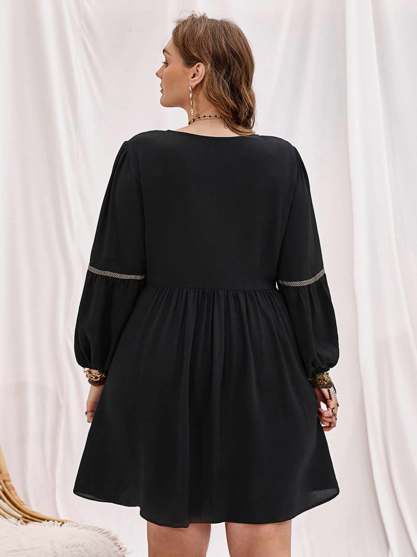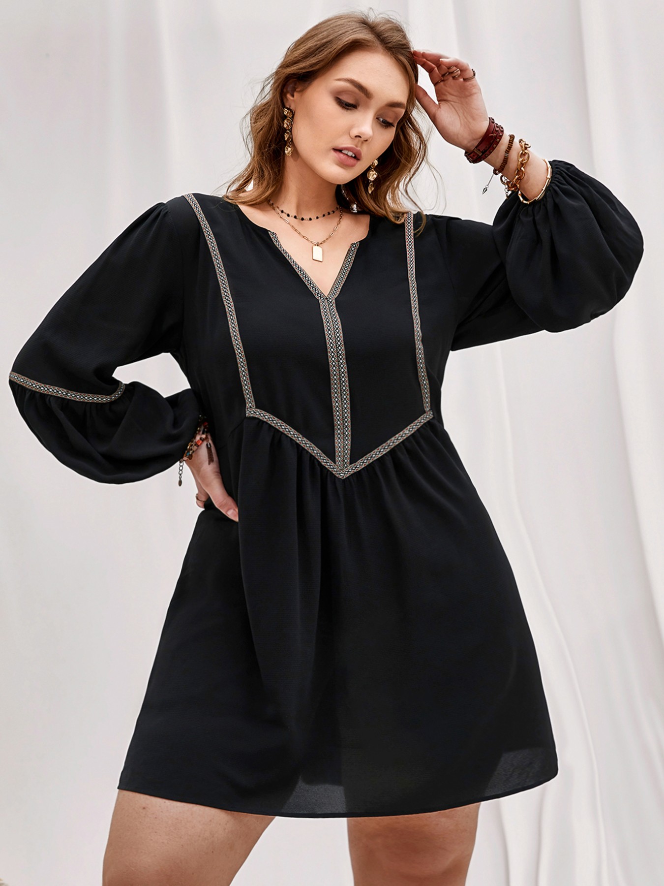 Plus Size Notched Balloon Sleeve Mini Dress