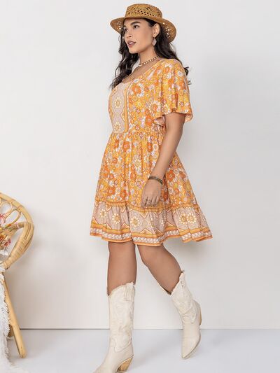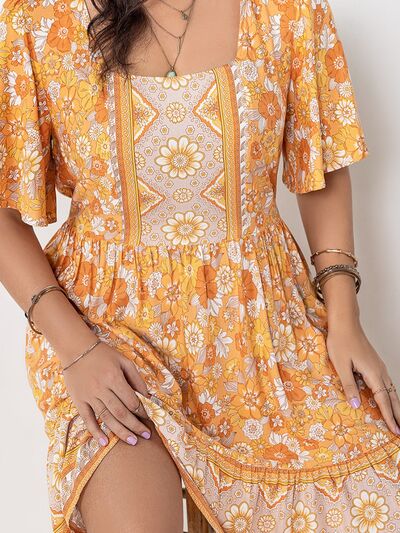 Plus Size Printed Square Neck Short Sleeve Dress