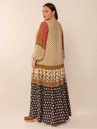 Plus Size Printed V-Neck Long Sleeve Maxi Dress