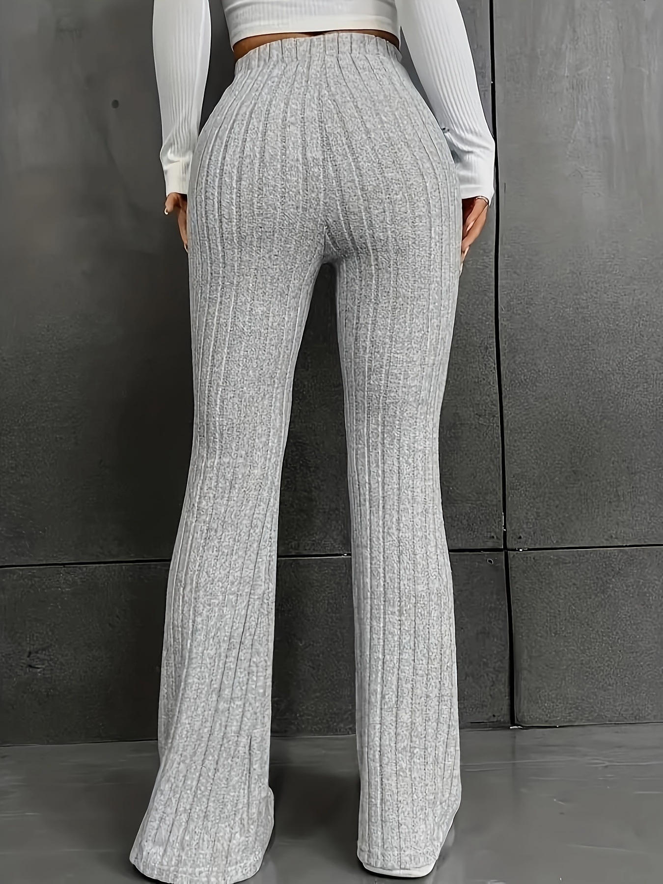 Plus Size Ribbed Knit High Waist Flare Pants