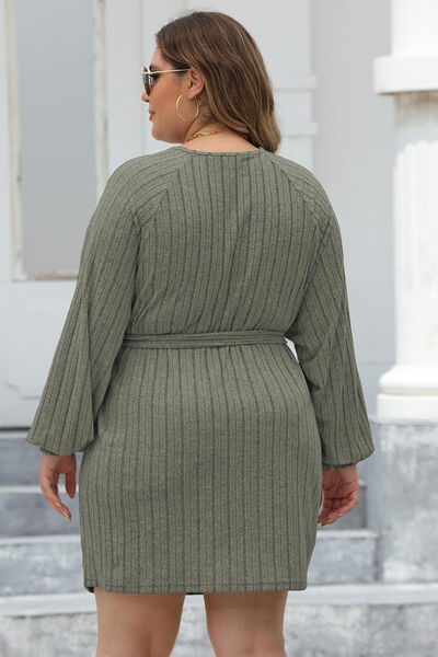 Plus Size Ribbed Tie Front Long Sleeve Sweater Dress