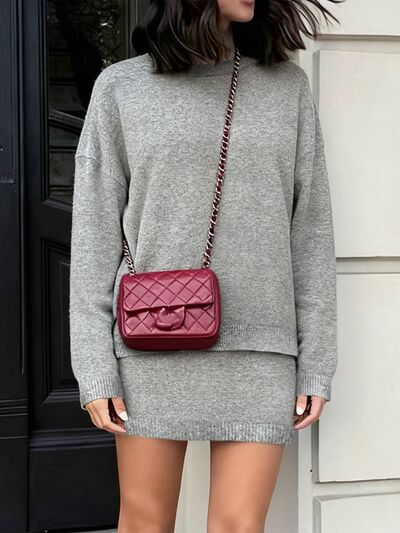 Plus Size Round Neck Long Sleeve Top and Skirt Sweater Set