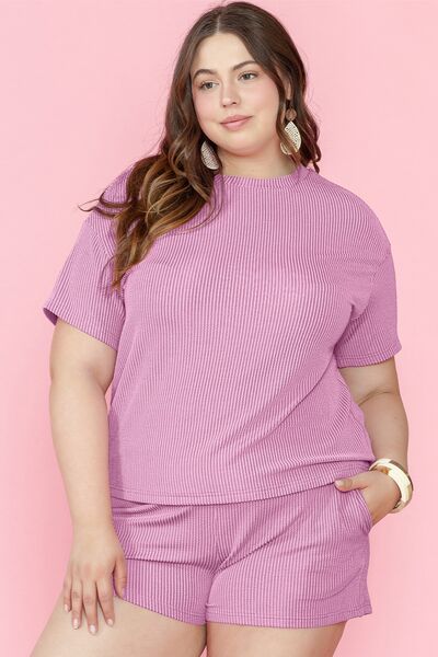 Plus Size Round Neck Short Sleeve Top and Shorts Set