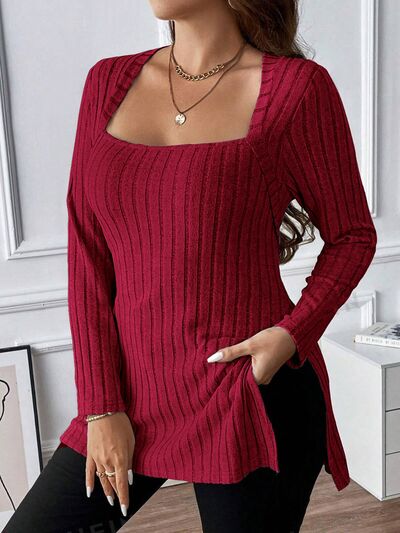 Plus Size Square Neck Long Sleeve Top