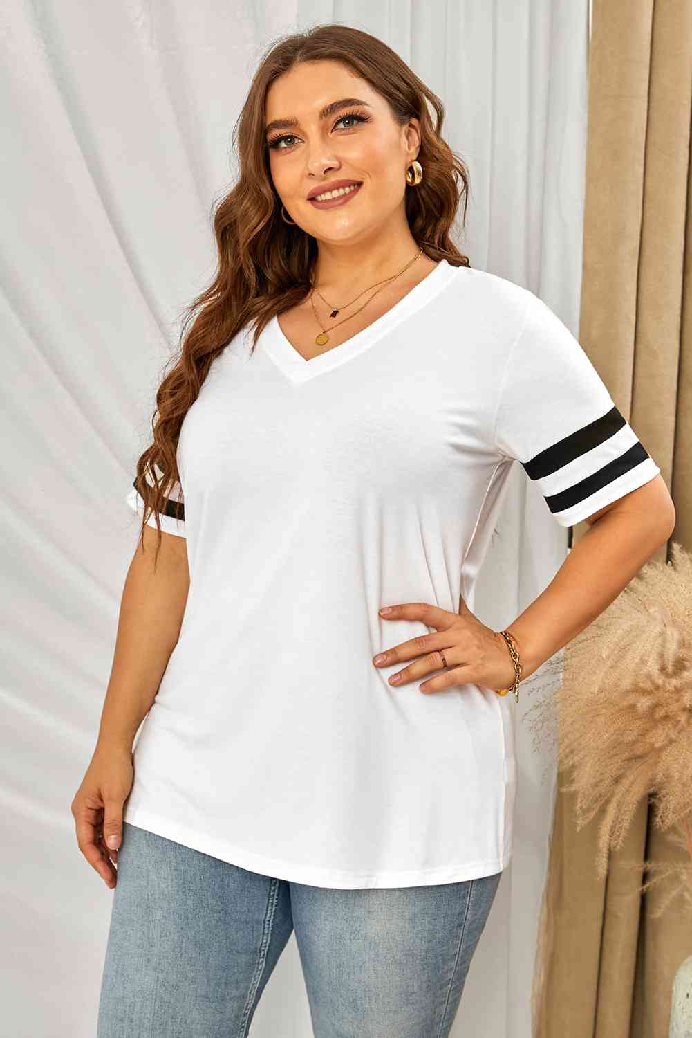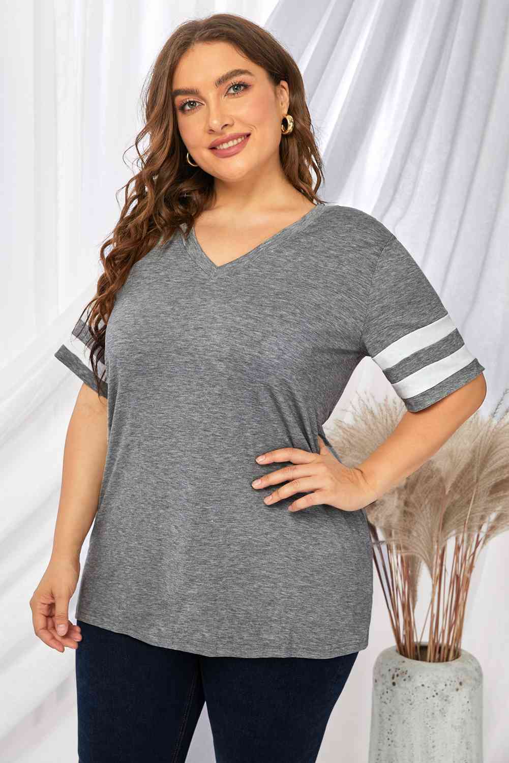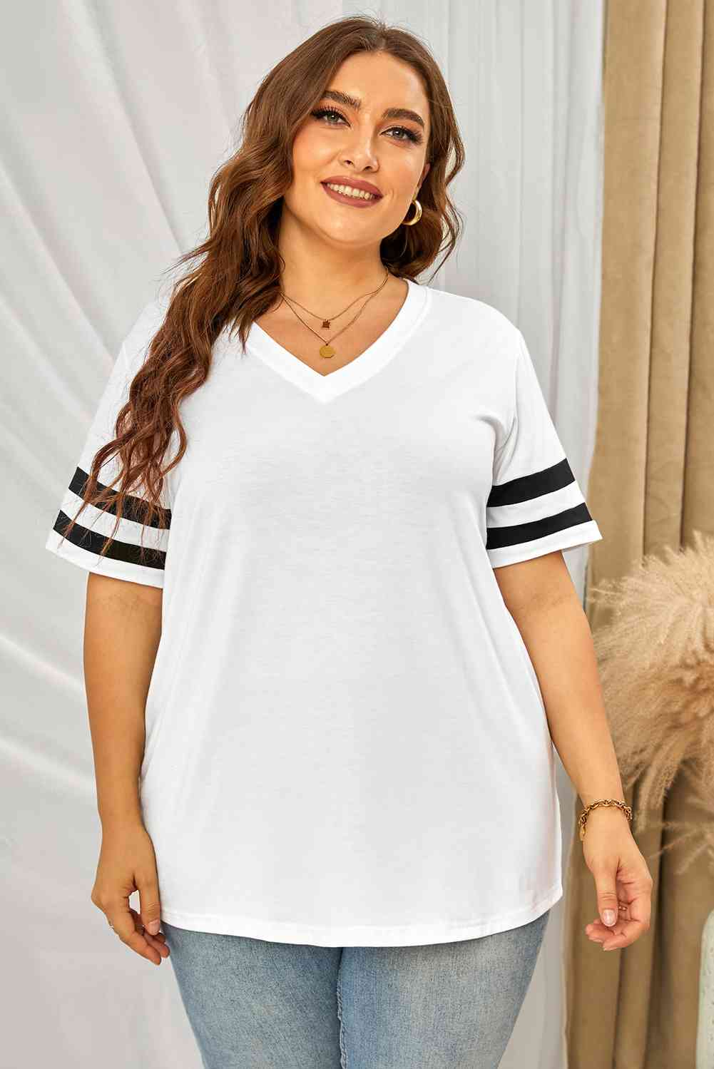 Plus Size Striped V-Neck Tee Shirt