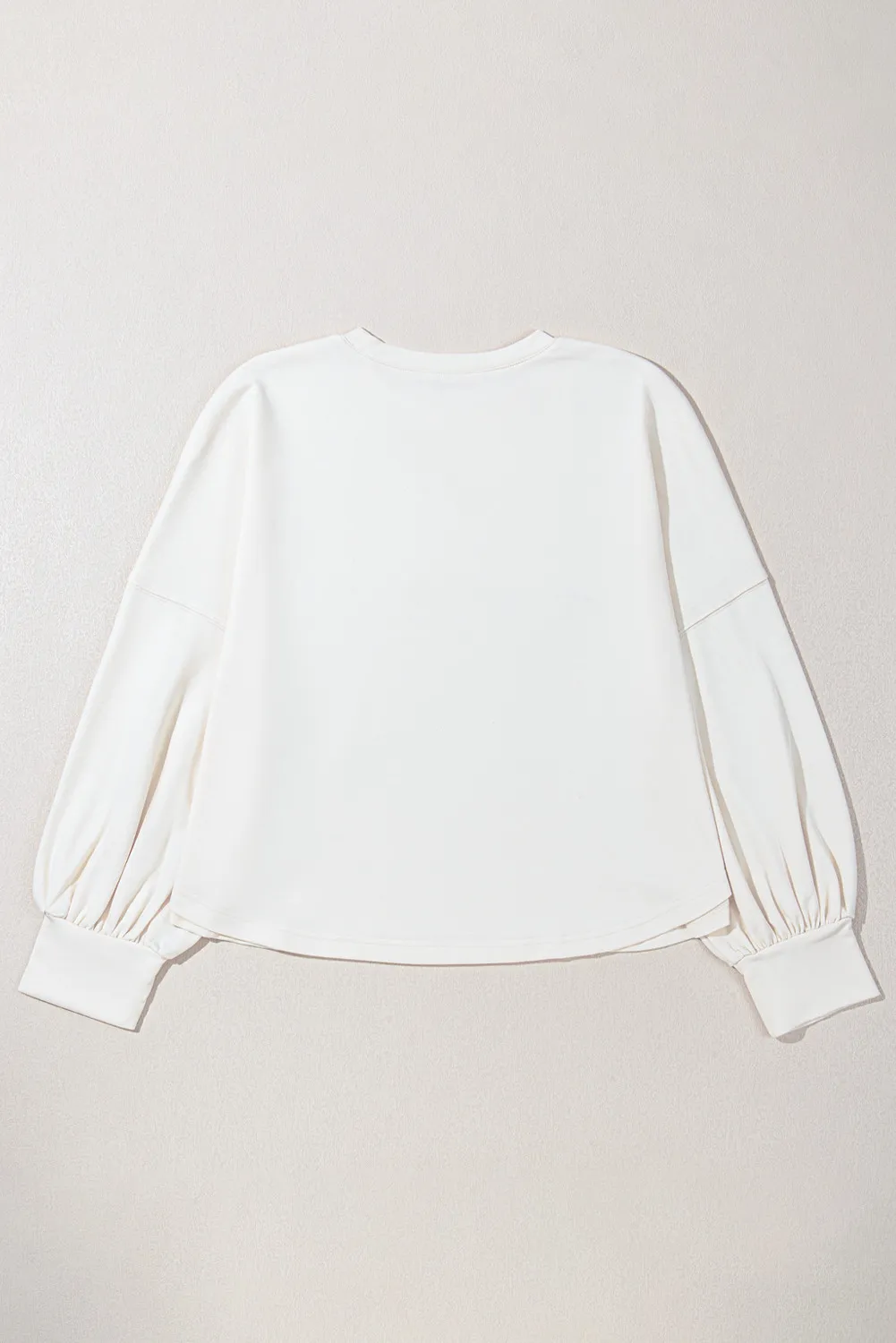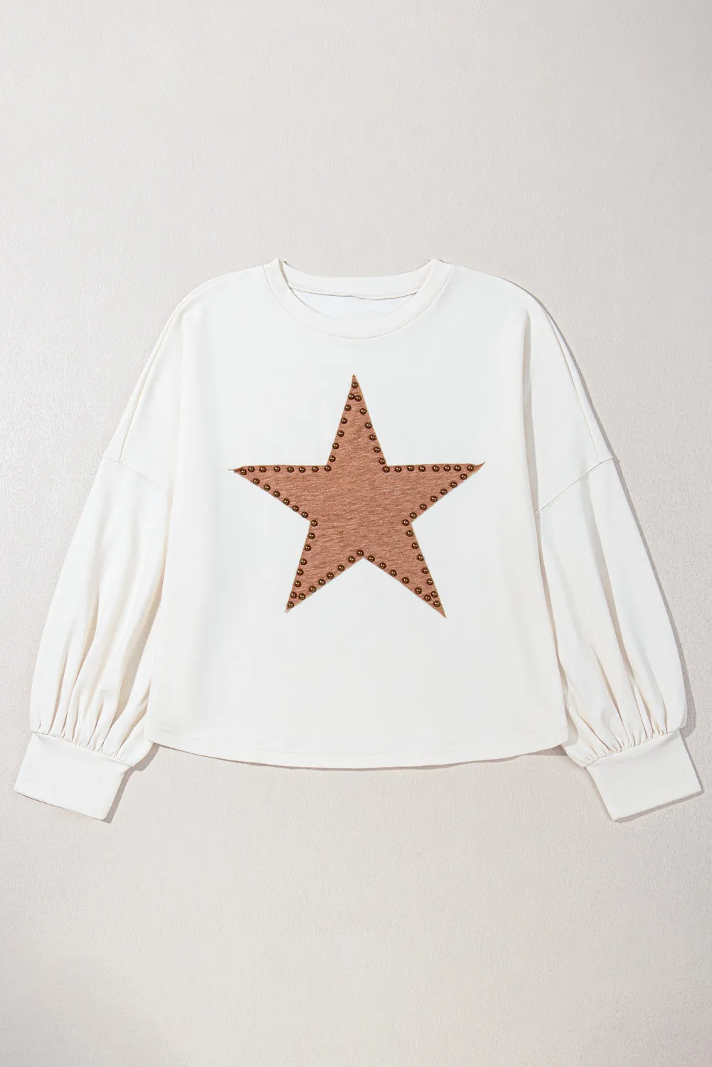 Plus Size Studded Star Round Neck Long Sleeve Blouse