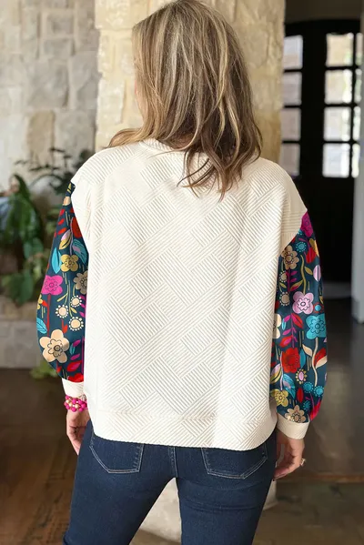 Plus Size Texture Printed Round Neck Long Sleeve Blouse