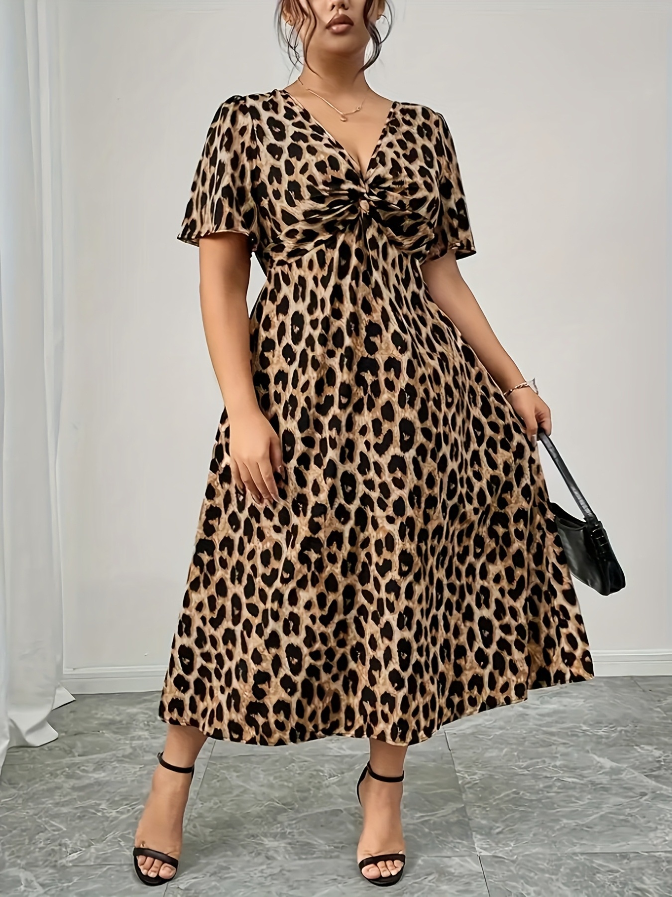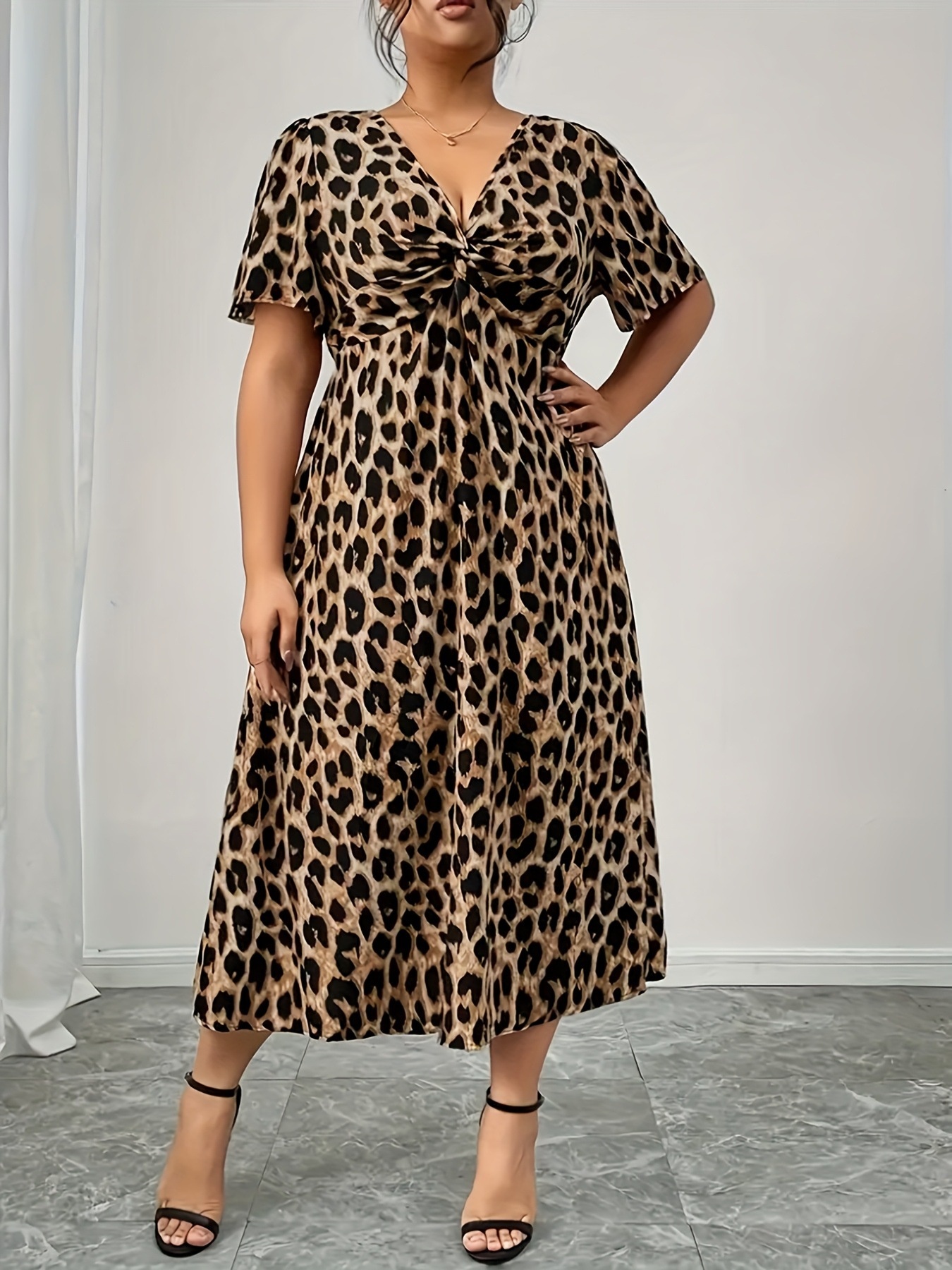 Plus Size Twisted Front Leopard Short Sleeve Dress