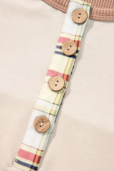 Plus Size Waffle-Knit Detail Plaid Round Neck Top