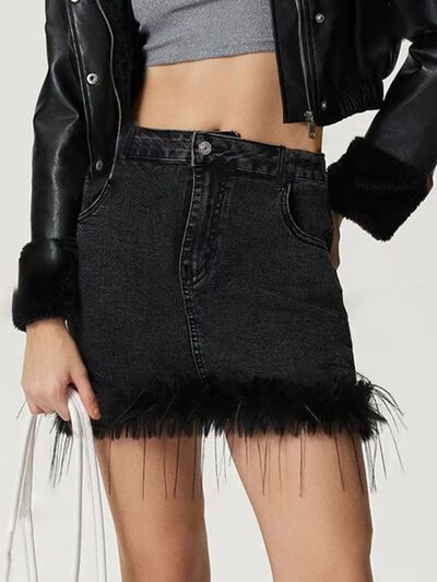 Plush Hem Mini Denim Skirt