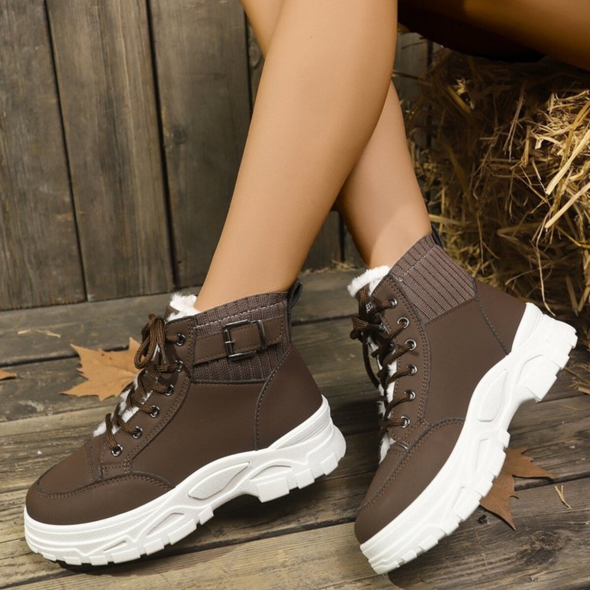 Plush Lining Lace Up Boots
