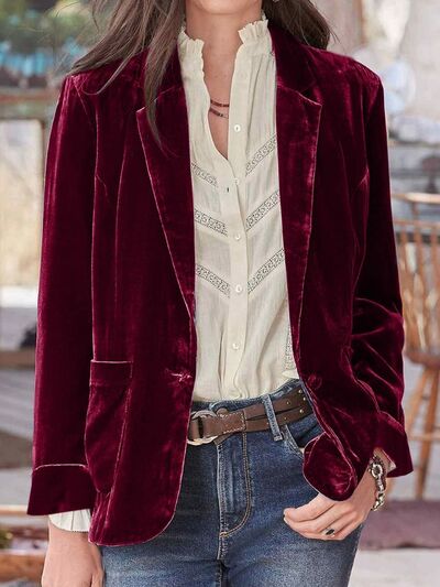 Pocketed Button Up Lapel Collar Blazer