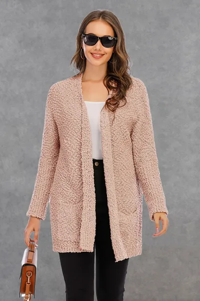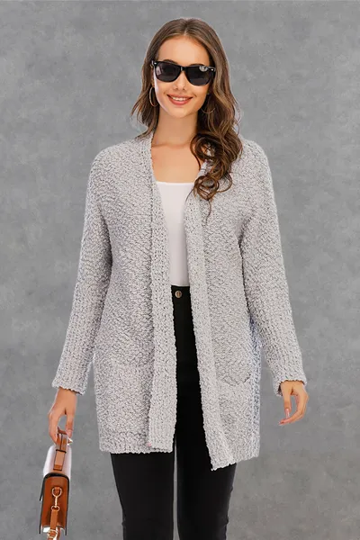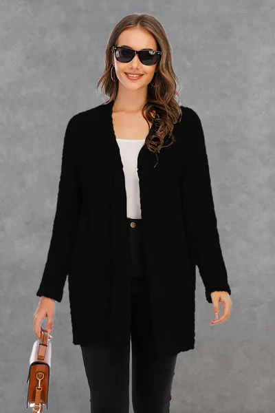 Pocketed Open Front Long Sleeve Cardigan